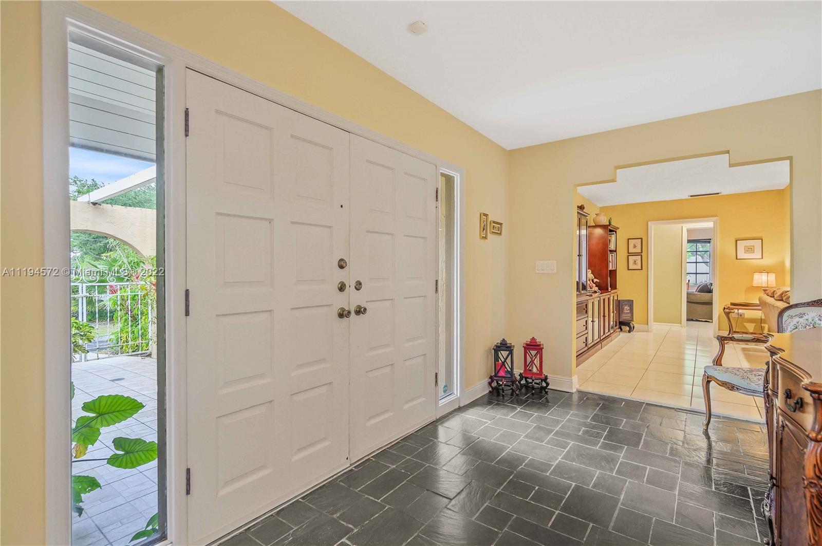 Amazing opportunity in the highly sought after gated community of Hammock Oaks! This waterfront property boasts the perfect canvas and magnificent back drop to create your own masterpiece. Ideal design and floor plan, this home offers thoughtful living space, spacious bedrooms and kitchen with breakfast area overlooking the pool/patio area. Charming characteristics also include a wood burning fireplace, welcoming family room, formal dining room, slate tile foyer entrance and french doors leading out to a tropical paradise. Enjoy a private sunset shimmering off the water from the patio area like a true Floridian. Other features include 2 car garage, circular driveway and screened in pool area. Excellent location in South Coral Gables nearby shops, great hospitals and top notch schools.