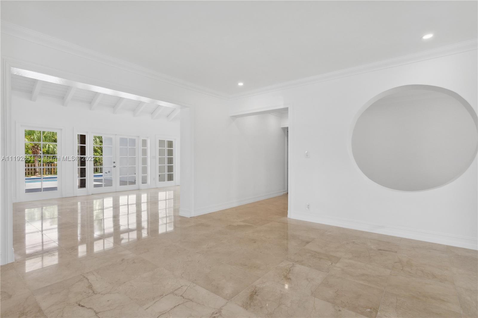 Florida dreaming in this fabulous updated home in the sought-after Kings Bay gated community in Coral Gables. The newly updated spacious and airy split-floor plan in this 4,000 sf space feels bright and welcoming. 5 bedrooms, (2 primary suites), plus an office and 3 full bathrooms, marble flooring throughout, an eat-in kitchen with new stainless steel appliances, and a laundry room. Light-filled interiors feature soaring vaulted ceilings, and beautiful French doors beckon you to the pool area and spacious backyard, a comfortable spot to relax with a morning cup of coffee or watch the sunset. The shaded covered patio is perfect for enjoying the outdoors and entertaining. A wonderful place to call home. This community has riparian rights to the Deering Bay Marina boat ramp.