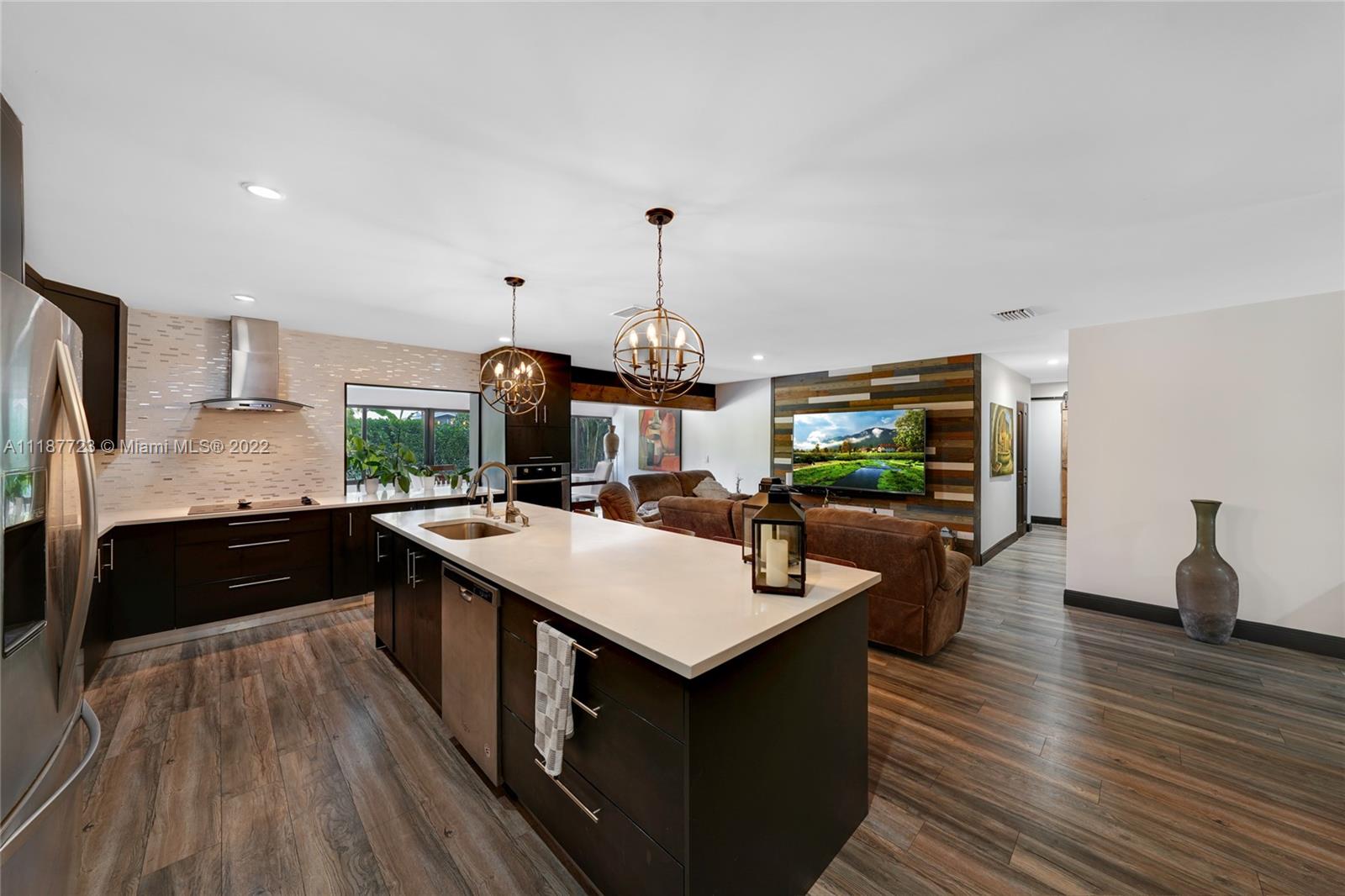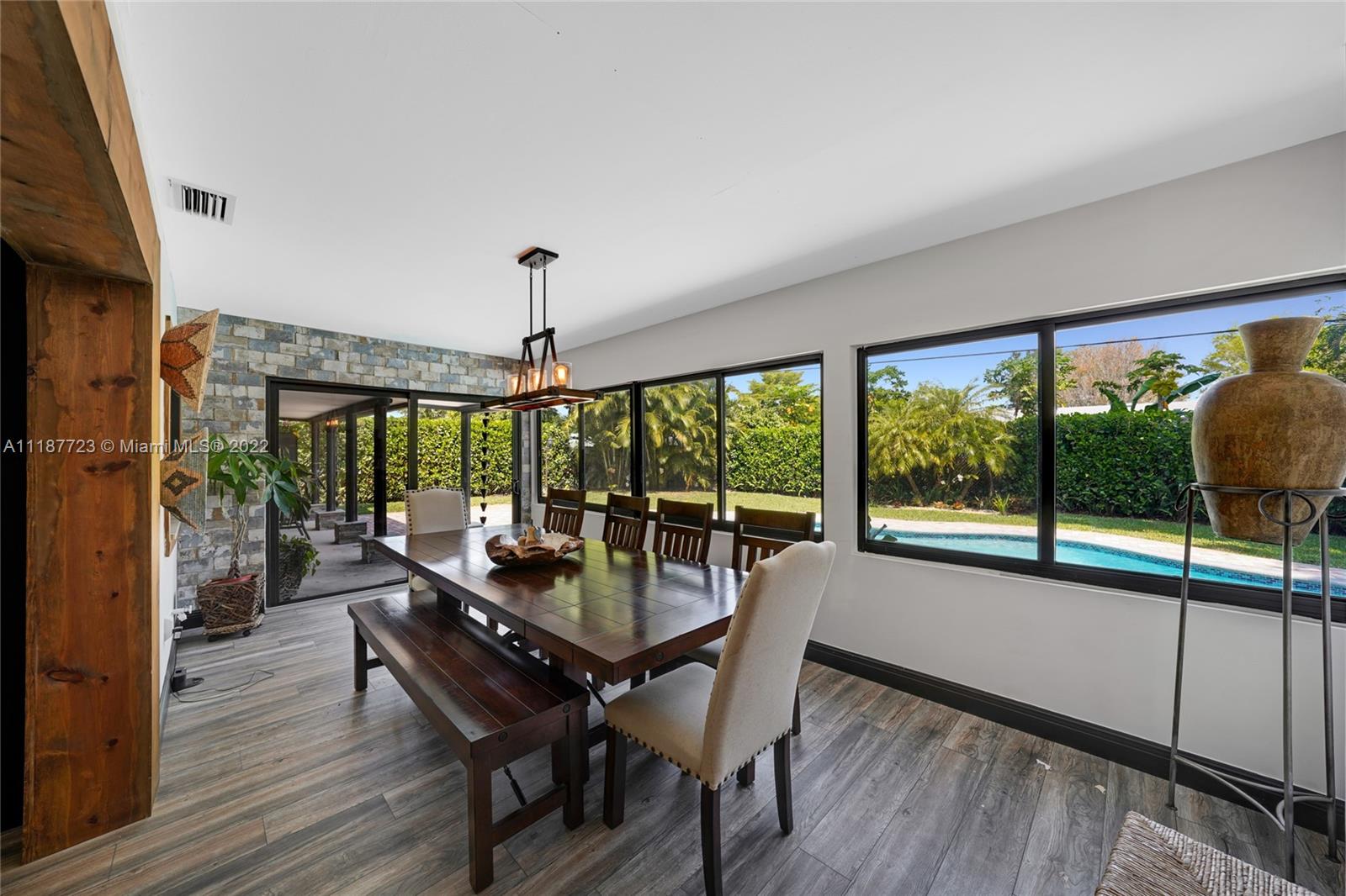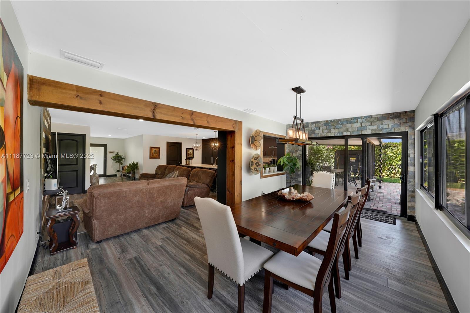 Beautiful totally renovated 4 bedroom and 2 bathroom, new roof, new impact windows, garage impact door, kitchen and bathrooms remodeled 2 years ago, vinyl floors 2 years old, appliances 3 years old, new A/C unit and water heater, salt water pool and diamond bright 1 year old, caver patio, covered patio, pool with newer pavers, shed, quiet neighborhood , great place to call home.