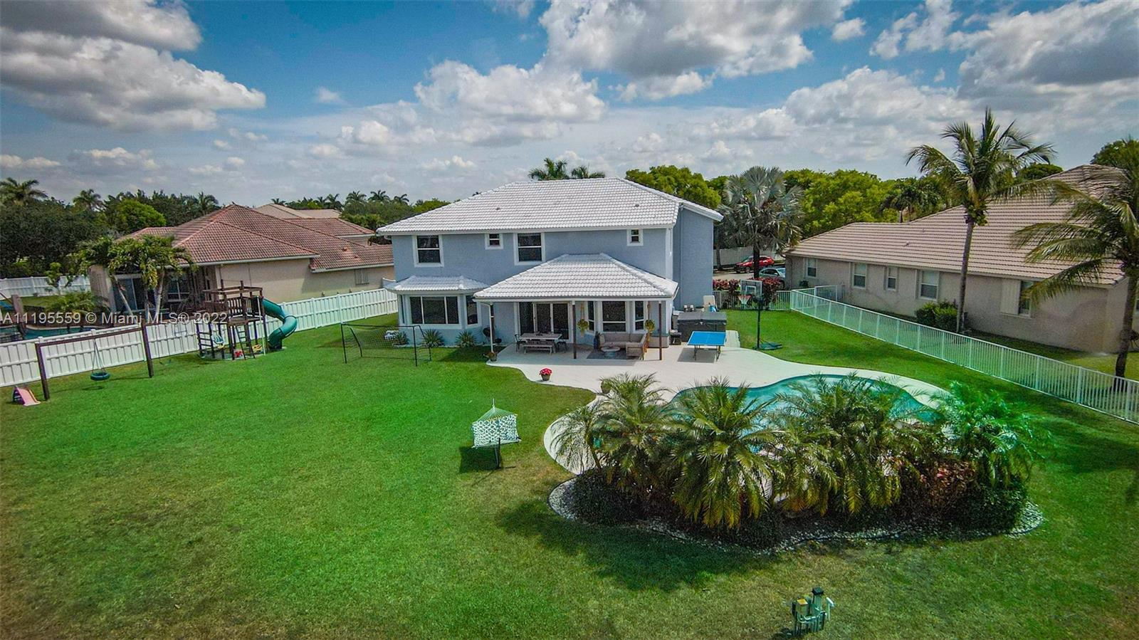 MAGNIFICENT CONTEMPORARY LAKEFRONT HOME. THIS SUBSTANTIALLY REMODELED 2 STORY 5BR/3.5BA HOME COMES WITH A POOL & ONE OF THE BIGGEST FENCED LOT IN THE COMMUNITY! NO NEED TO VENTURE OUT ANYMORE, KIDS WILL HAVE ENOUGH SPACE TO HAVE THEIR OWN SOCCER FIELD & PLAYGROUND! THE INVITING OUTSIDE AREA & PATIO ARE PERFECT FOR ENTERTAINING. HOME FEATURES A MODERN OPEN LIVING/DINING AREA WITH VAULTED CEILINGS & LOTS OF BRIGHT NATURAL LIGHTING. KITCHEN HAS GRANITE COUNTERTOPS, SS APPLIANCES, GAS STOVE & A BREAKFAST NOOK WITH BAY WINDOWS THAT OVERLOOK THE GORGEOUS VIEW. LARGE MASTER SUITE W/DOUBLE CLOSET ON THE 1ST FLOOR, ALL OTHER BEDROOMS ARE UPSTAIRS + A LOFT WHERE FAMILIES CAN ENJOY QUALITY TIME. ALL WINDOWS ARE HURRICANE IMPACT. 3 CAR GARAGE. GATED COMMUNITY WITH STATE OF THE ART RECREATION CENTER.