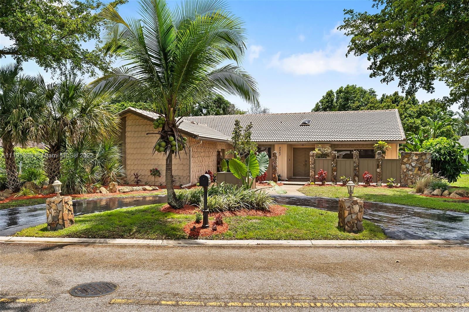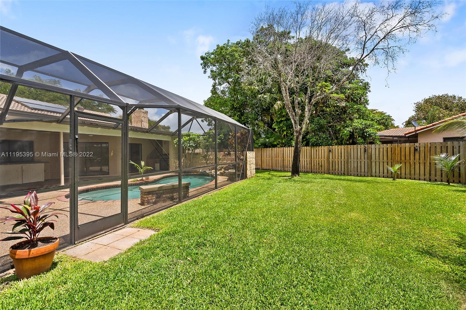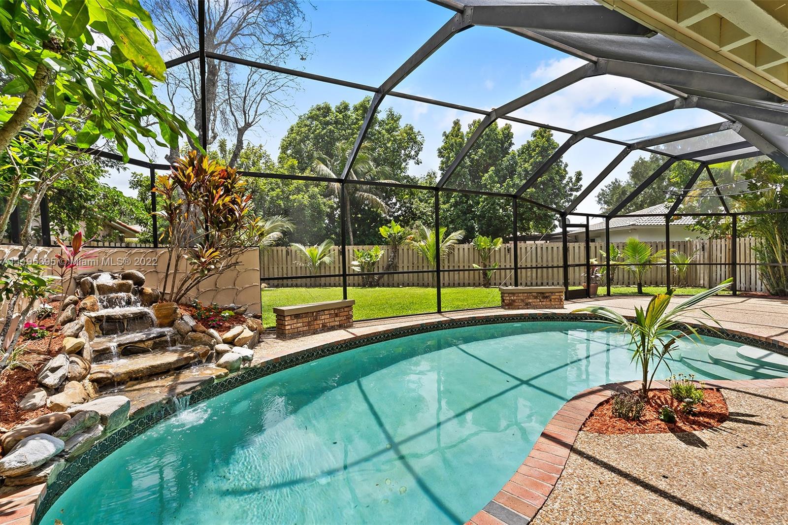 STUNNING POOL RESIDENCE FEATURES 4 BEDROOMS 2 BATHS WITH BONUS ROOM AND OFFICE. BEAUTIFULLY SITUATED ON A CORNER LOT IN THE NEIGHBORHOOD OF MAPLEWOOD WITH NO HOA!! OVER 2700 SQFT UNDER AIR AND AN AMAZING OVERSIZED LOT FOR ENTERTAINING AT 16,468 SQFT. THIS RARE FIND BOASTS HUGE COVERED PATIO OVERLOOKING WATERFALL AND POOL, HIGH CEILINGS, NEW KITCHEN WITH STAINLESS STEEL APPLIANCES, FIREPLACE, LARGE FAMILY ROOM, HUGE BONUS ROOM OR 5TH BEDROOM, NEW FENCE, NEW IRRIGATION SYSTEM, BEAUTIFULLY LANDSCAPED, ELECTRICAL PANEL UPGRADED, NEW FLOORING IN BEDROOMS, AND SCREEND IN PORCH. SO MUCH EXTRA LAND FOR EITHER ADDITION OR EVEN A SEPERATE GUEST HOME IF DESIRIED. SO MANY EXTRAS AND COMPLETELY MOVE IN READY. IN THE HEART OF CORAL SPRINGS WITH PLENTY OF RESTAURANTS, SHOPPING, AND ENTERTAINMENT.