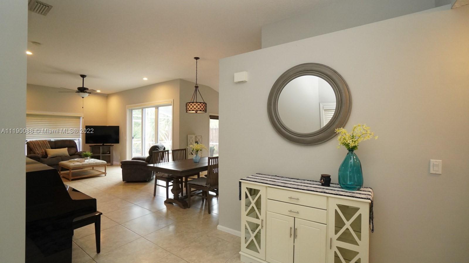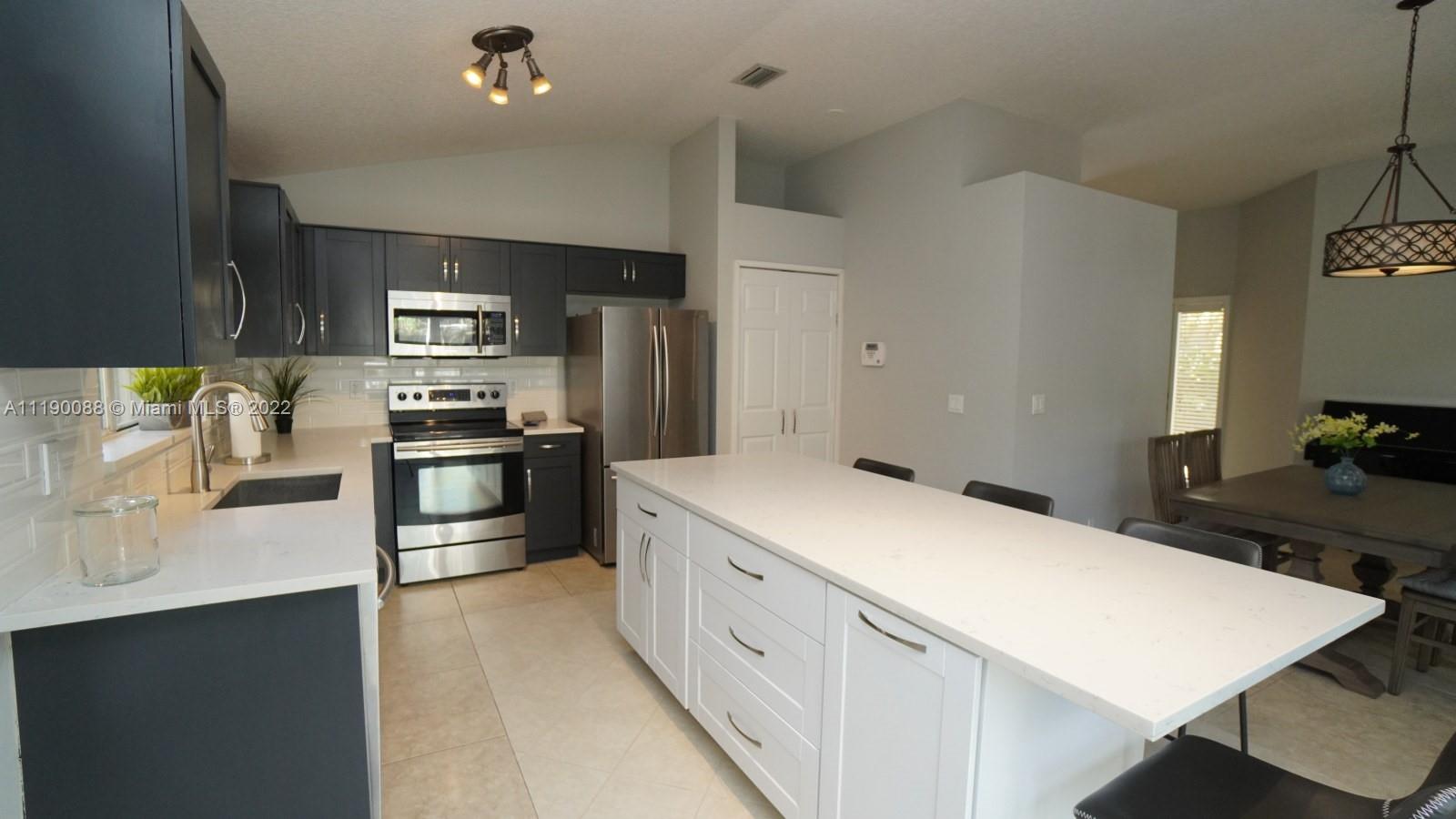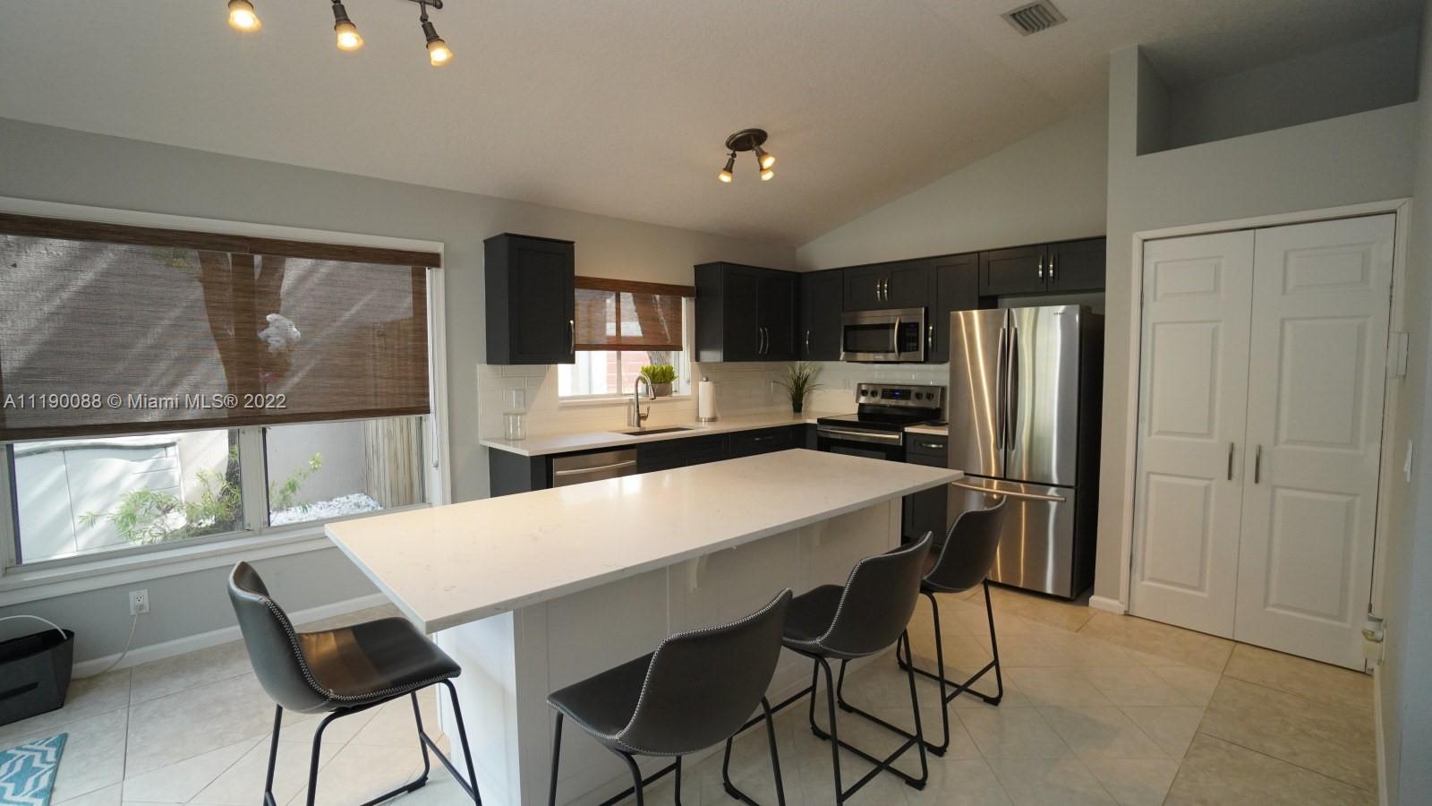 WOW! Beautifully updated 3 bed 2 bath, 1 story, single family home in sought after Bridgewater. Entire home professionally painted. Spacious open floor plan with 10’ volume and vaulted ceilings. Large neutral 24" tile throughout. Upgraded kitchen with wood Shaker cabinetry, S/S appliances, quartz countertops, subway tile back splash, center island w/ seating for 4 plus large pantry closet. Spacious main bedroom; totally remodeled main bathroom with double sinks and 5' custom subway tiled shower; indoor laundry room; epoxy painted floors in 2 car garage; impact sliding glass doors to screened lanai with water/garden views; 2009 tile roof; 2021 A/C, accordion shutters and more! Centrally located to major roads, shops, & dining! Multiple Offers Received. Highest and Best Due May 2 @ 5:00 pm.