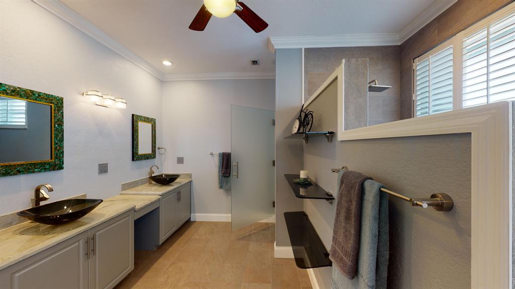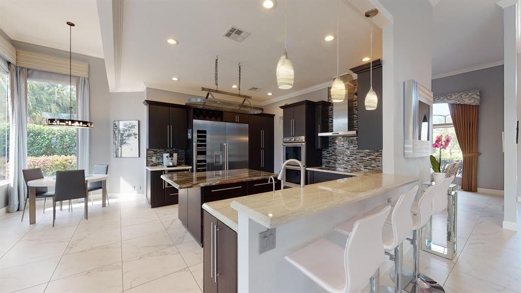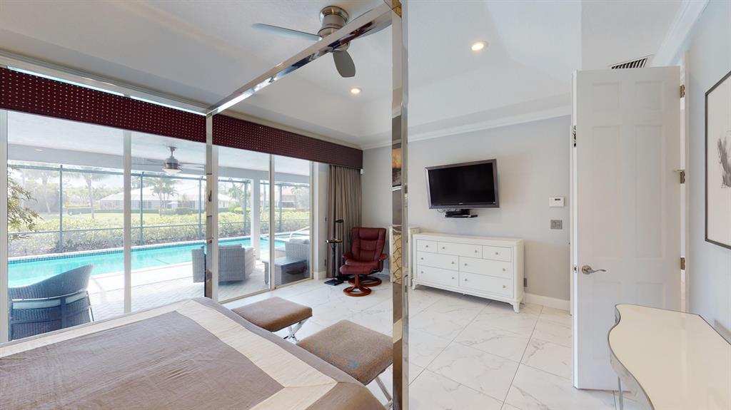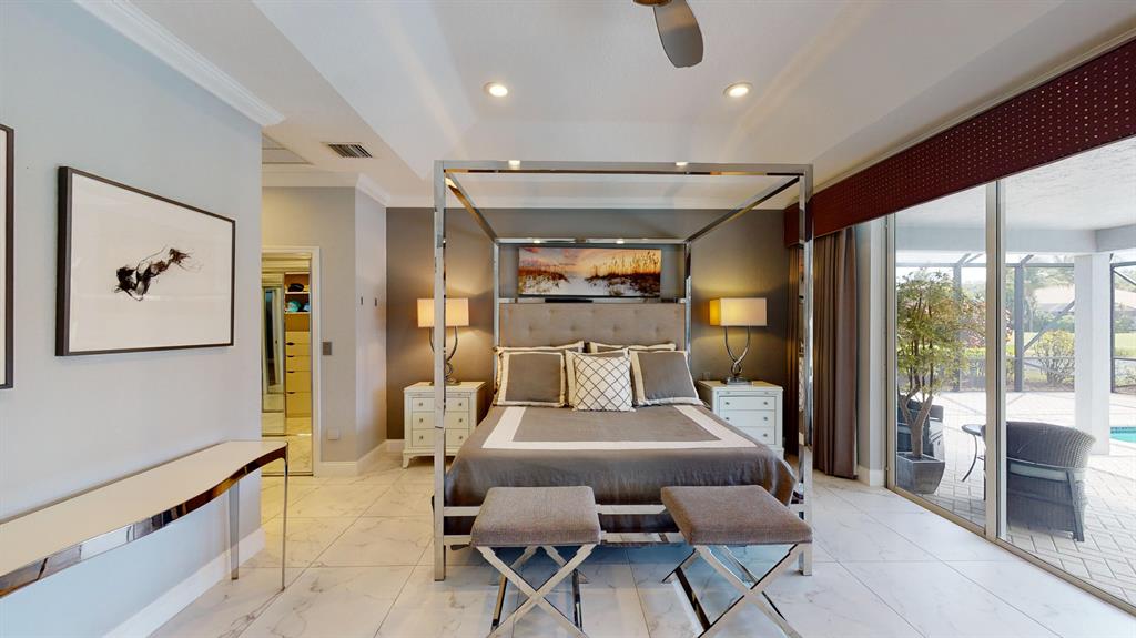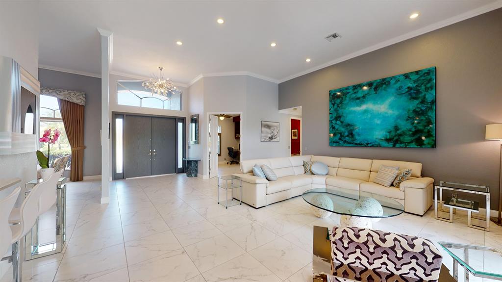 Welcome to your stunning new home. Fully Renovated with the latest modern conveniences, this 4 bedroom, 3 bath, 2.5 car garage pool home sits on over .28 of an acre. Situated on a quiet interior lot overlooking beautiful water and golf course views. The gourmet kitchen has top of the line Thermador appliances including double ovens, Induction stove & wine fridge. Plenty of space in this light and bright open concept floorpan with 3 way split bedrooms. The large master suite has his and hers California closets, custom blinds and a gorgeous master bath boasting a walk-in shower, double vanities and private bluetooth bidet with heated seat. 2nd and 3rd bedroom are spacious and bright while the 4th bedroom currently doubles as an office. Exterior just painted, crown molding, 2 new a/c units,