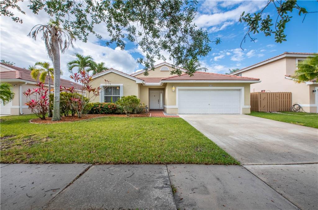 Beautiful and bright one story home, freshly painted inside with a neutral color, triple split floor plan, remodeled bathroom, tile throughout the social areas ,new A/C unit, accordion shutters. Spacious backyard with a mango tree and space to build a pool. Keystone Lakes is man gated community, close to major expressways,malls, hospital and restaurants.