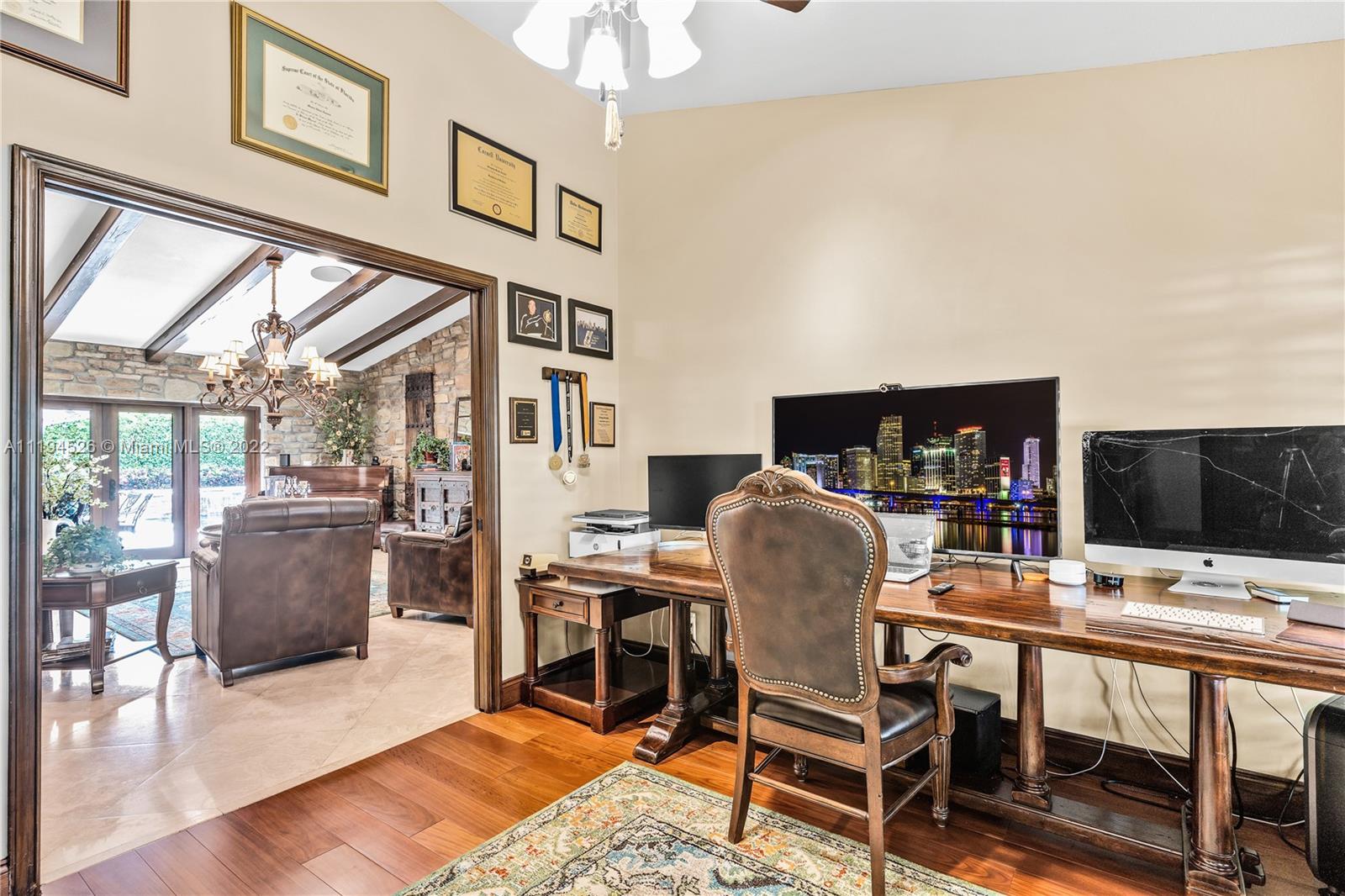 • Интерьер:WetBar, BuiltinFeatures, ClosetCabinetry, FrenchDoorsAtriumDoors, FirstFloorEntry, Fireplace, KitchenIsland, MainLevelMaster, SplitBedrooms, VaultedCeilings, Bar, WalkInClosets, CentralVacuum