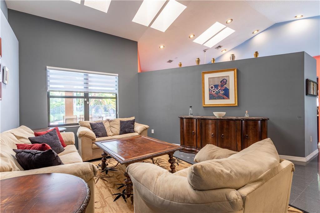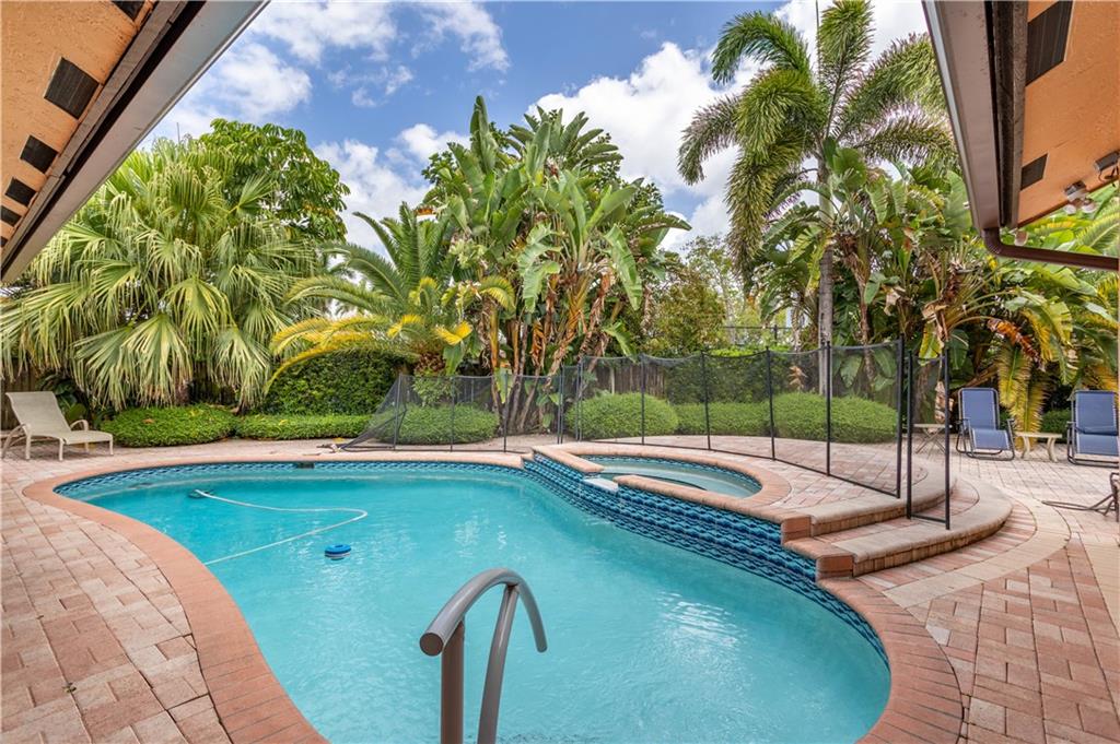 4 BEDROOM 2 BATH LARGE FAM/DIN & MINI OFFICE. OVERSIZED LOT. LUSH LANDSCAPING, CIRCULAR PAVED DRIVEWAY, VOLUME CEILINGS W/SKYLIGHTS, SPLIT FLOOR PLAN, EAT-IN KITCHEN, TANK-LESS WATER HEATER SYSTEM, 3 ZONE A/C UNITS, NEW IMPACT WINDOWS 2021, NEW ROOF 2021, HURRICANE/HIG H IMPACT DOORS, SECURITY SYSTEM, TILE FLRS, BUILT-IN CENTRAL VACUUM CLEANER, FENCED-IN EXTENDED PAVED PATIO, POOL & JACUZZI W/CHILD SAFETY POOL FENCE, TIKI HUT. COMMUNITY POOL, BASKETBALL, TENNIS, CLUB HOUSE AND GYM.