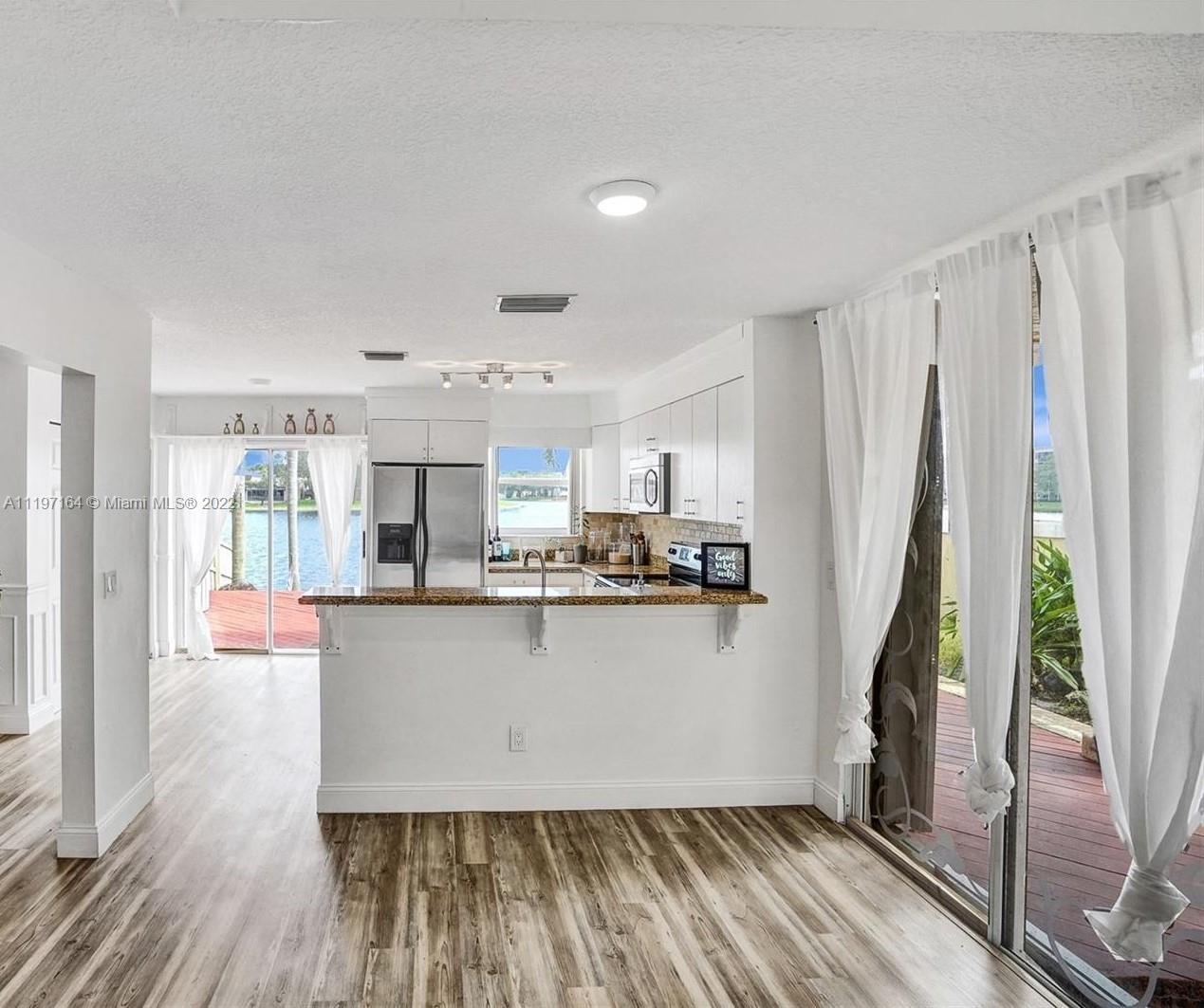 Amazing Views!!!This lakefront 3 bedroom 2 1/2 bath two story home in the gated community of Pierpoint,is a must see!! Bright open living area. Fully updated with stainless steel appliance and wood laminate flooring through out. Front door keypad entry ,Garage was converted to add to living area with a portion remaining for ample storage. Roof is less than 6 years old as is A/C, Giant back deck and pier overlooking the massive lake. Complete with hurricane accordion shutters this house is move in ready!! Close to everything, centrally located in the heart of Pines!