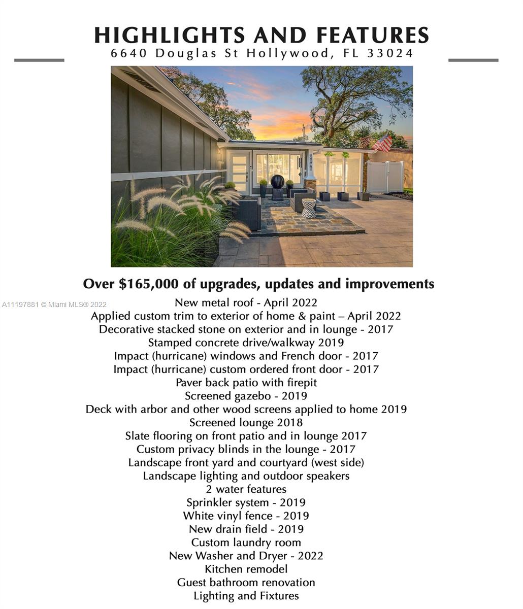 ONE OF A KIND MODERN HOME HAS BEEN COMPLETELY UPDATED INSIDE & OUT WITH OVER $165,000 OF IMPROVEMENTS. STUNNING EXTERIOR EXUDES STYLE COMPLETE W A BRAND NEW METAL ROOF, STACKED STONE & BOARD & BATTEN DETAIL & FABULOUS SCREENED COURTYARD LOUNGE W STUNNING SLATE TILE FLOORING. GORGEOUS KITCHEN OFFERS WOOD CABINETS, GRANITE COUNTERTOPS, STAINLESS STEEL APPLIANCES & FRENCH DOORS TO THE BACKYARD PERFECT FOR ENTERTAINING. ROOMS ARE BRIGHT & AIRY W PLENTY OF LIGHT RADIATING ALL AROUND. SPECTACULAR LAUNDRY ROOM IS SO DREAMY, YOU'LL WANT TO DO LAUNDRY. PRIVATE FENCED YARD IS AN ENTERTAINER'S PARADISE FEATURING FIRE PITS, BUNGALOW & SCREENED PRIVATE PATIO ALL SURROUNDED BY LUSH LANDSCAPING. IMPACT WINDOWS, LONG OVERSIZED STAMPED CONCRETE DRIVEWAY FITS MANY CARS. WALK TO HOUSES OF WORSHIP. NO HOA.