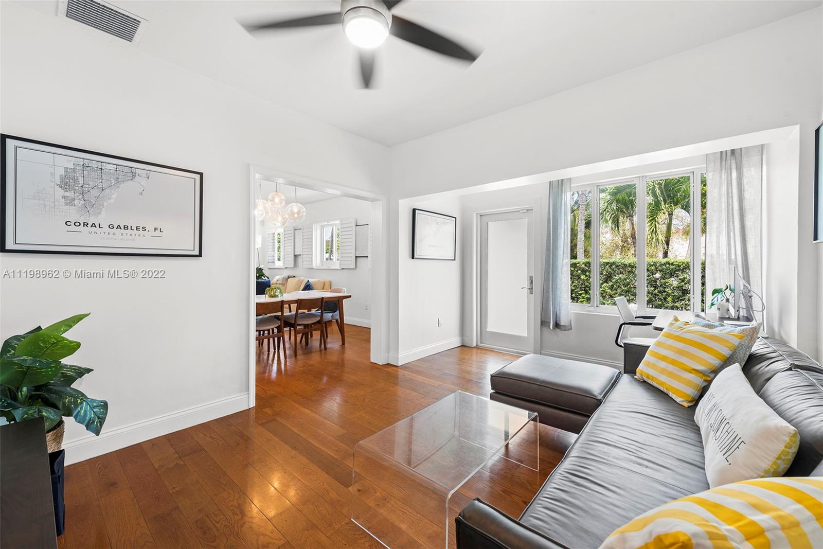 Best of both urban and single-family living in the heart of Coral Gables. One block from the shops and restaurants in Downtown Gables, this 3 bed/2 bath home has it all! The open layout features wood flooring throughout, plantation shutters, updated bathrooms and kitchen. Enjoy the Florida sunshine with a comfortable patio, barbecue, and your very own mango tree! Additional features include complete impact windows, 2018 tile roof, and 1-car garage. Set within Coral Gables K-8 Preparatory School boundaries and nearby many great pre-K options.