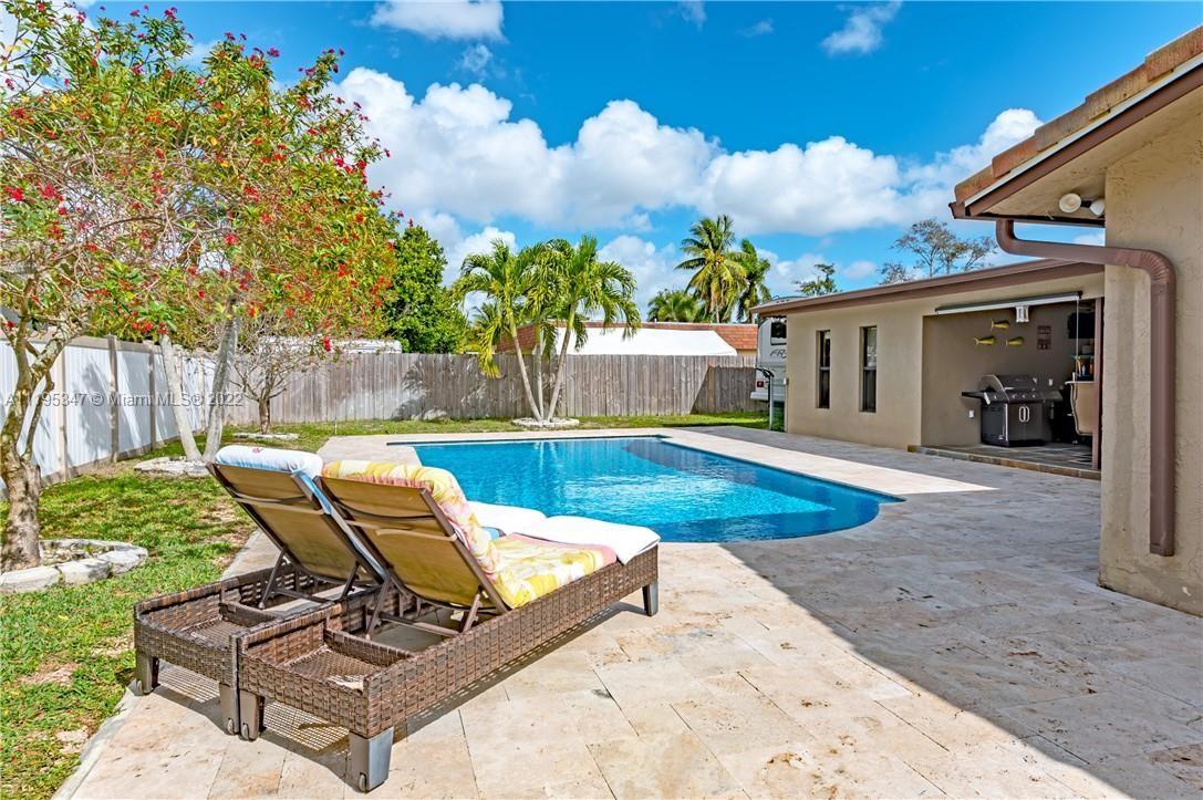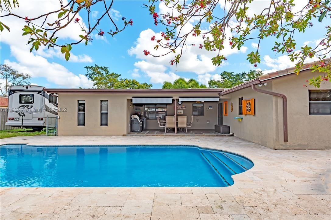 Open Concept 3/2 (former 4/2) with 2267 square feet under air and split floor plan. Chef's kitchen is the centerpiece for large family and entertaining. Large master suite with walk-in closet and resort style master bath. Generous second and third bedrooms. Huge laundry room with 2018 appliances. Large covered patio with hookups for outdoor kitchen. Pool and deck redone in 2017. A/C 2017. Roof 2013. 2 car showroom garage. 12,000 square feet lot with ample RV/boat parking. All impact doors and windows, new plumbing and electric. Energy efficient home. Wired HD camera system. Easy access to i595, i75, i95, Turnpike, Fort Lauderdale and airport. Great school district. No HOA. Will need 45 to 60 day closing arrangement at least