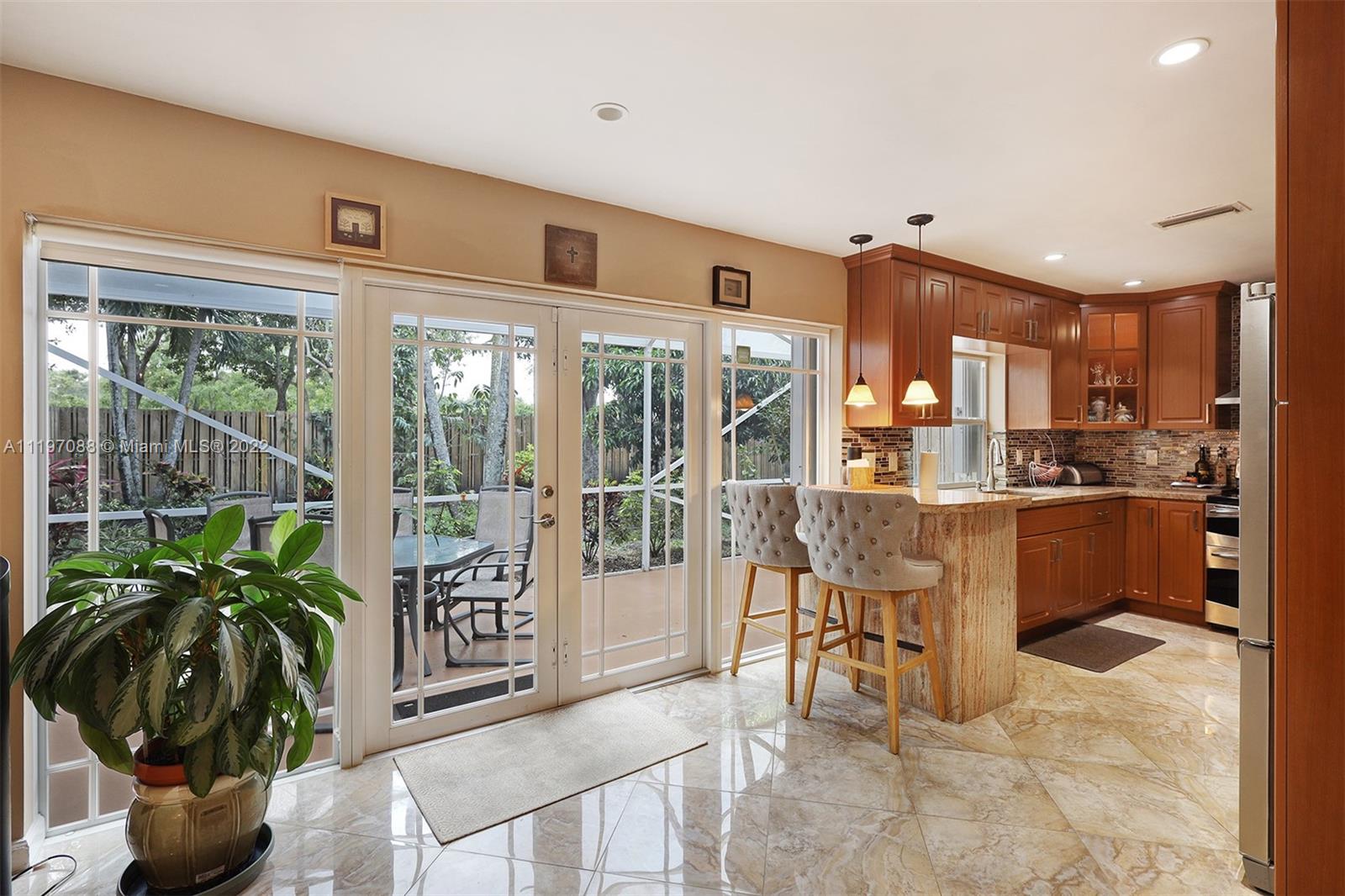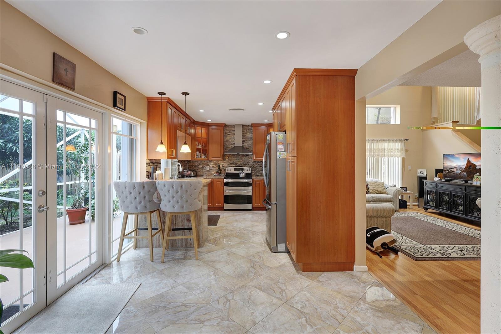 PUBLIC OPEN HOUSE: Sat May 14th, 1:00PM-4:00PM and Sun May 15th, 1:00PM-3:00PM. Two Story, 4 bedrooms, 2 1/2 bathrooms, and 2-car garage. Covered Tiled Patio, New Roof (2014), A/C unit (2013). Remodeled Wood Cabinet and Granite Kitchen with built-in Hood over Range, Drawer-racked style Microwave, all stainless steel appliances (built 2020). Private yard / no other house behind. HOA includes maintenance on common areas, clubhouse, 3 pools and more! Centrally located in the heart of Plantation near the Sawgrass Mall and all the shopping areas, minutes from the FLL airport and the beaches via I-595 and quick access to I-75 as well. Optional Items: Camera Surveillance System, TV and 2 Kitchen Counter Chairs.