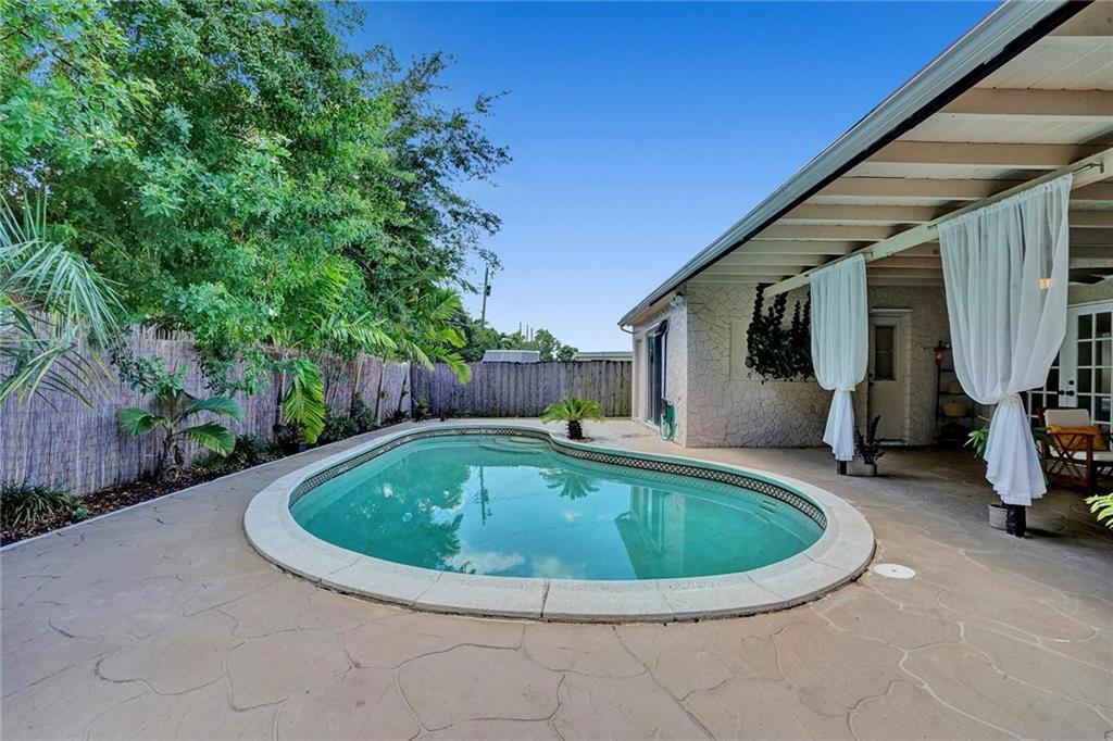 Welcome Home! Brand New Shingle Roof! Brand New A/C 06/2022. No HOA! This beautiful 3 bedroom plus den awaits your family. Nice open floor plan. Split bedrooms. New Laminate throughout home. Upgraded kitchen with stainless appliances. Both bathrooms have been updated. This home also features an extra room which can be 4th bedroom (no closet), office, workout room, play room ect. Master bedroom overlooks very inviting pool area. Cabana bathroom leading to pool. Go out the french doors and relax on your private covered patio. Hurricane Shutters, Fenced yard. Freshly painted. Newer hot water heater. Neat and clean. Don't miss this one. Call today! Showings start Wednesday, June 22.