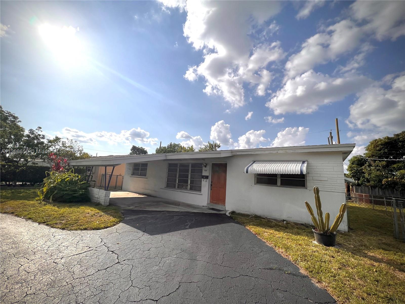 FOR SALE AS IS. Welcome to 7201 Shalimar St., a midcentury design property full of potential with an open floor plan; 3 bedrooms, 2 updated bathrooms, and vintage style kitchen.New roof and updated A/C. Bonus multi-functional room usable as an office or guest bedroom with additional exterior side door. This home has a full laundry room next to the kitchen which can serve as pantry as well. Good sized fenced backyard. Space on the sides to park a boat or RV. Peaceful neighborhood located in a convenient location. Just minutes from virtually everything including groceries, retail, dining, entertainment, Hard Rock Stadium, and the turnpike, with easy access to two international airports and the Hard Rock Hotel & Casino. House need updates and renovations.