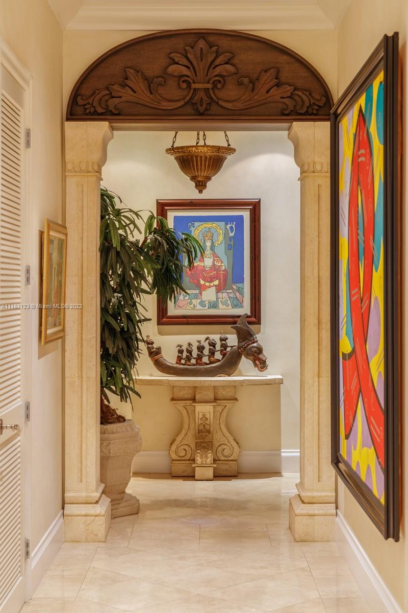 Resting on a gated 1.5-acre oasis in North Pinecrest, this celebrity-owned 6-bed, 5.5-bath estate designed by Ramon Pacheco is a highly private and lush retreat embraced by mature oaks, exotic palms, fruit trees, and two state-of-the-art koi ponds. The interior boasts vaulted ceilings and custom built-ins throughout, exquisite coquina stone columns, carved wood arches, and a split floor plan. Entertain or unwind in the glass-enclosed patio in the rear, featuring an all-wood beamed ceiling, coquina-carved faux fireplace, 180-gallon aquarium, and floor-to-ceiling windows that offer expansive views of the pool deck and lush garden, creating an awe-inspiring area where home and nature converge. Known as Casa Macao, this one-of-a-kind property is a union of top-quality design, art, and comfort.