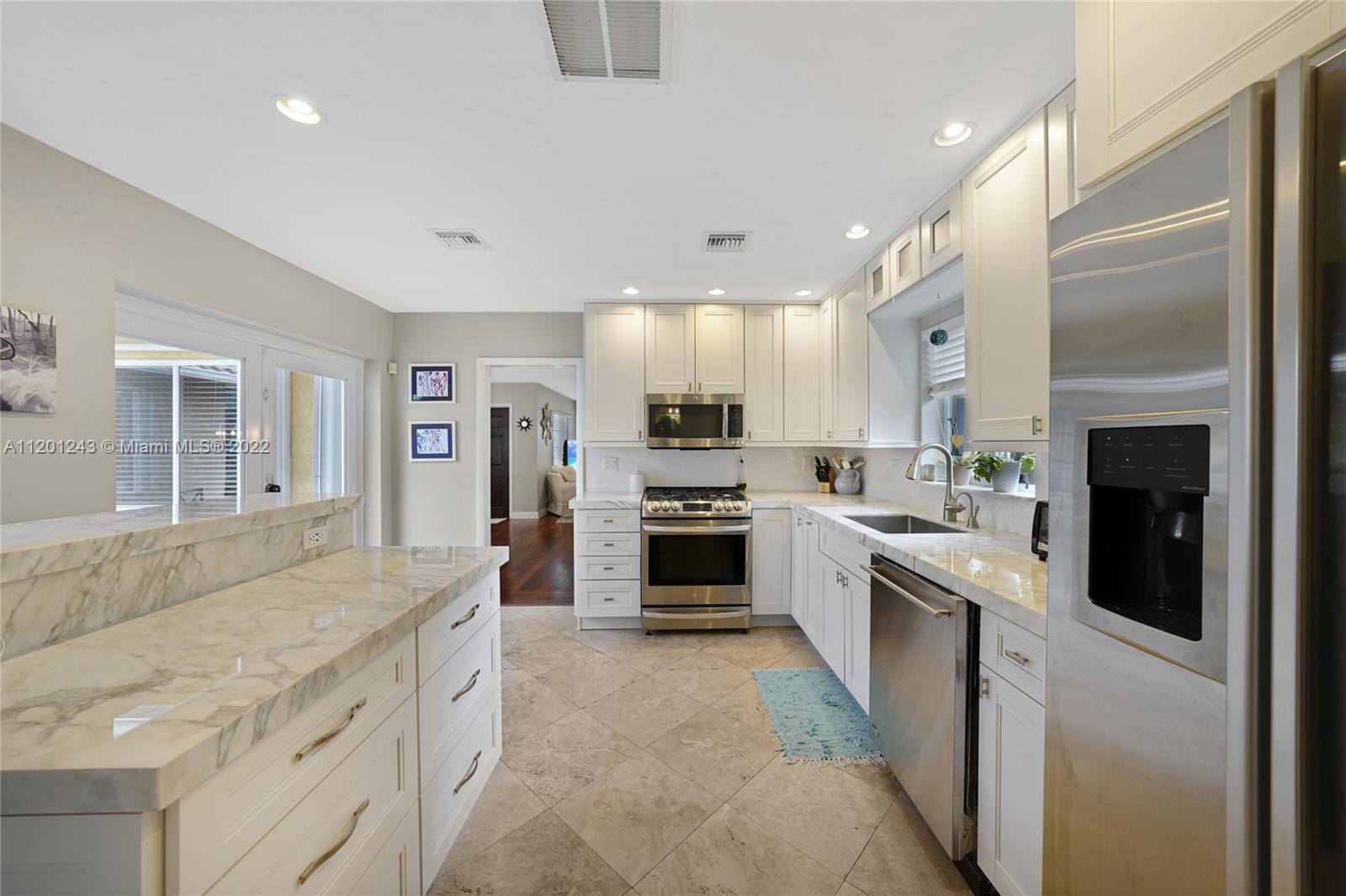 Are you ready to fall in love with the home of your dreams? This amazing property offers a recently remodeled kitchen with marble countertops, SS appliances, and gas range. Three remarkably renovated bathrooms with beautiful custom finishes, amazing spacious living quarters with custom built-ins, formal dining, commodious bedrooms including a stunning primary suite with great light from French doors that lead you into the private, fenced backyard with gorgeous landscaping. Enjoy your own personal oasis with heated pool and spa. Other features include tankless water heater, generator, two-zone HVAC, and ADT system amongst much more! Highly sought after neighborhood in Hollywood Lakes where you are walking distance from the sandy beaches of Hollywood. Make this home your own!