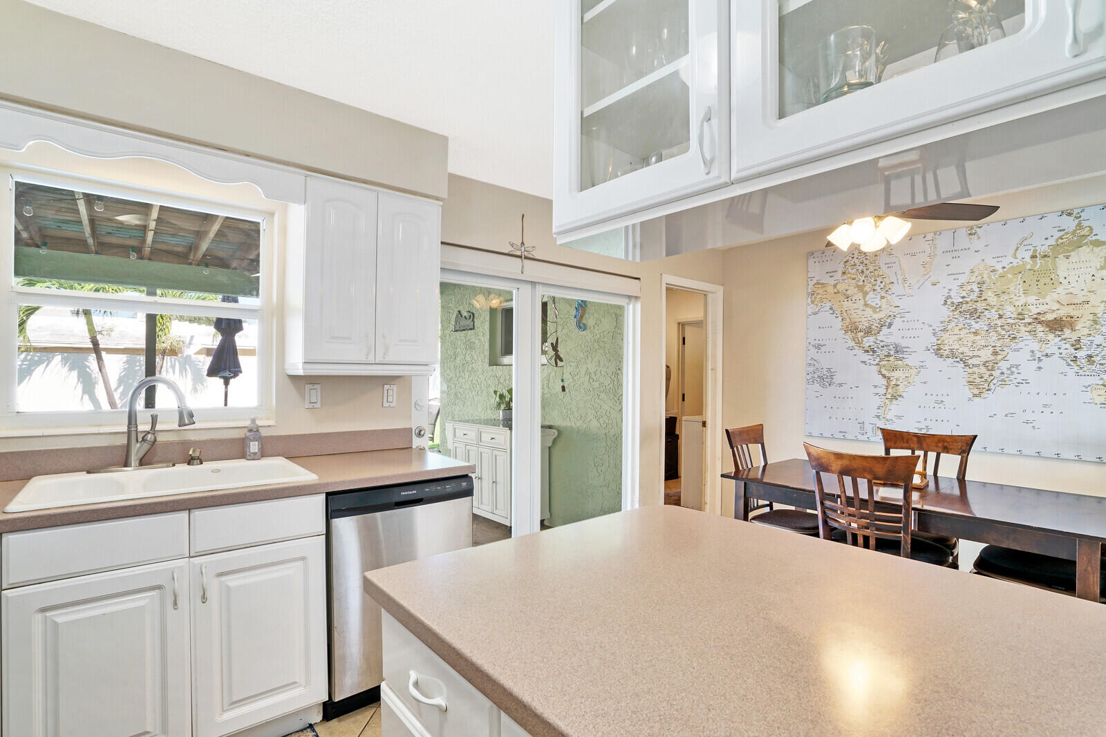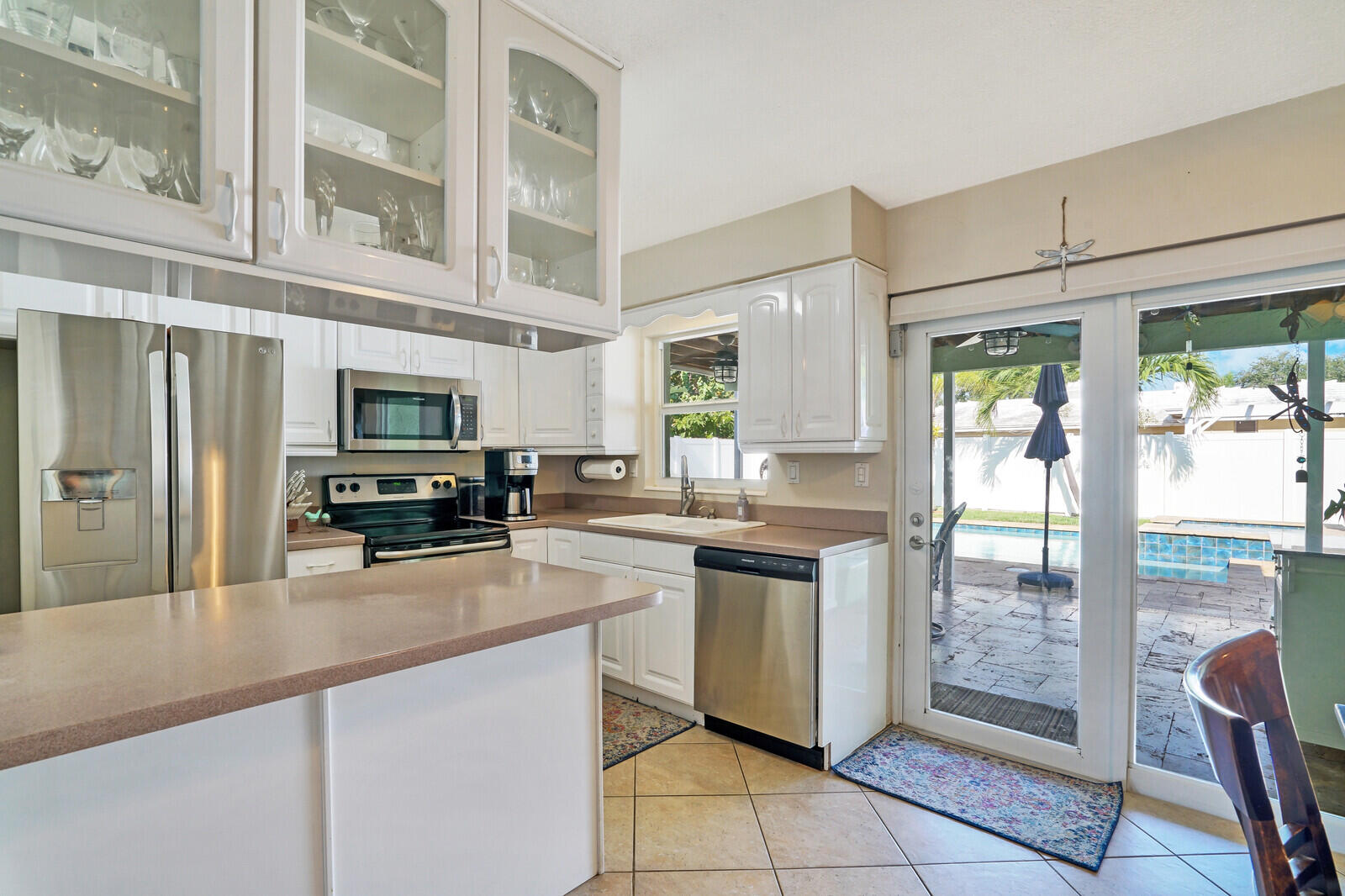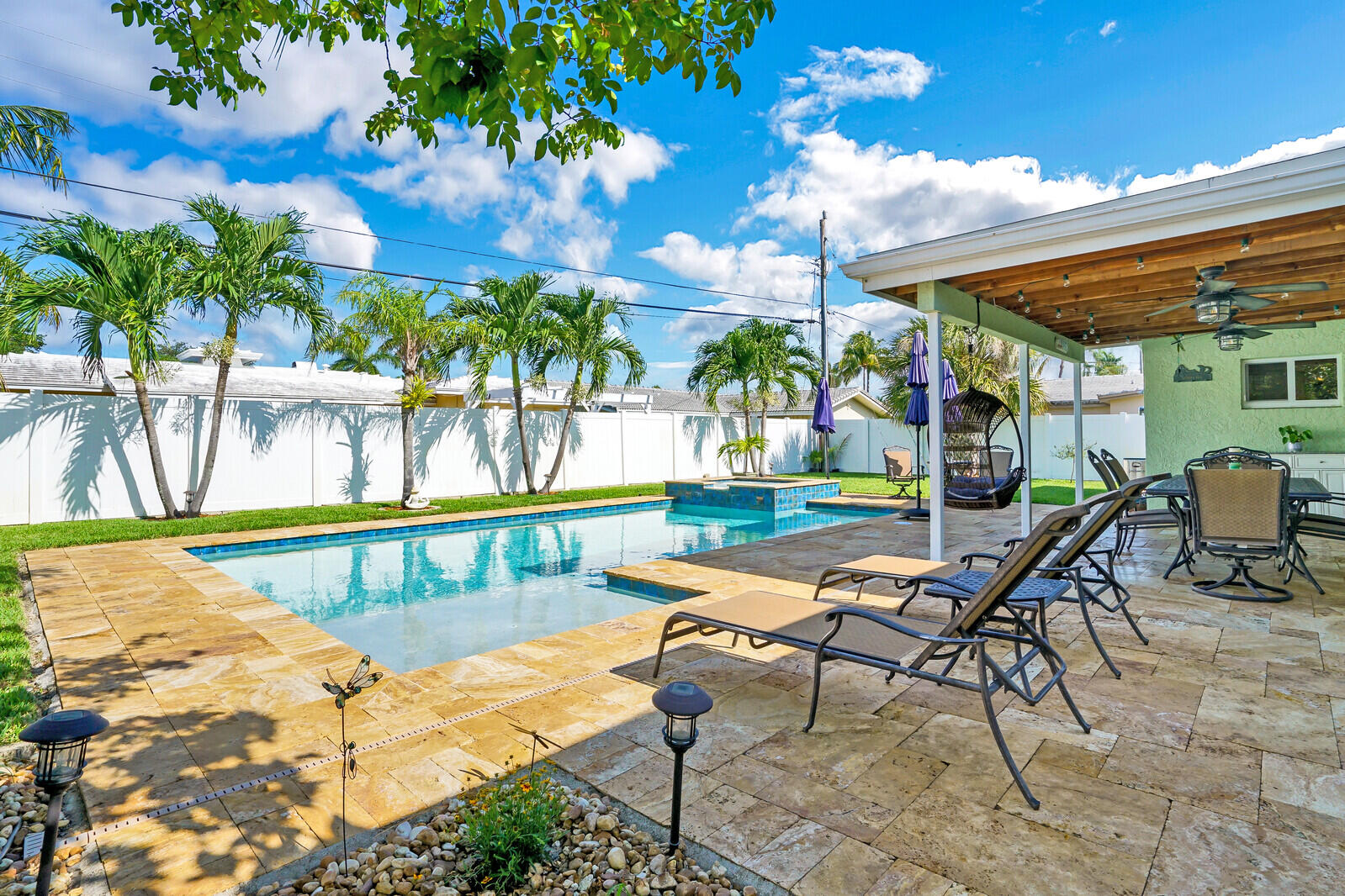 Welcome to your new home in Coral Ridge Isles, minutes from the beach and many trendy restaurants. This 3 Bedroom, 2 bath, 2 car garage boasts HURRICANE IMPACT doors and windows and a closed off spacious den which can be used as a 4th bedroom and newer kitchen appliances. The kitchen leads out to a fenced in utopia backyard. Enjoy family get togethers with your very own heated salt water pool with spa constructed 2014. Pool comes equipped with a handheld remote/sun shelf/bubbler fountain/LED lights. Back yards is complimented with travertine tiles & manicured landscaping. Even during rainy days you can enjoy the outdoors under your covered patio. Sprinkler system (on well) with rust guard system and timer and property comes equipped with security lighting - motion and timer.