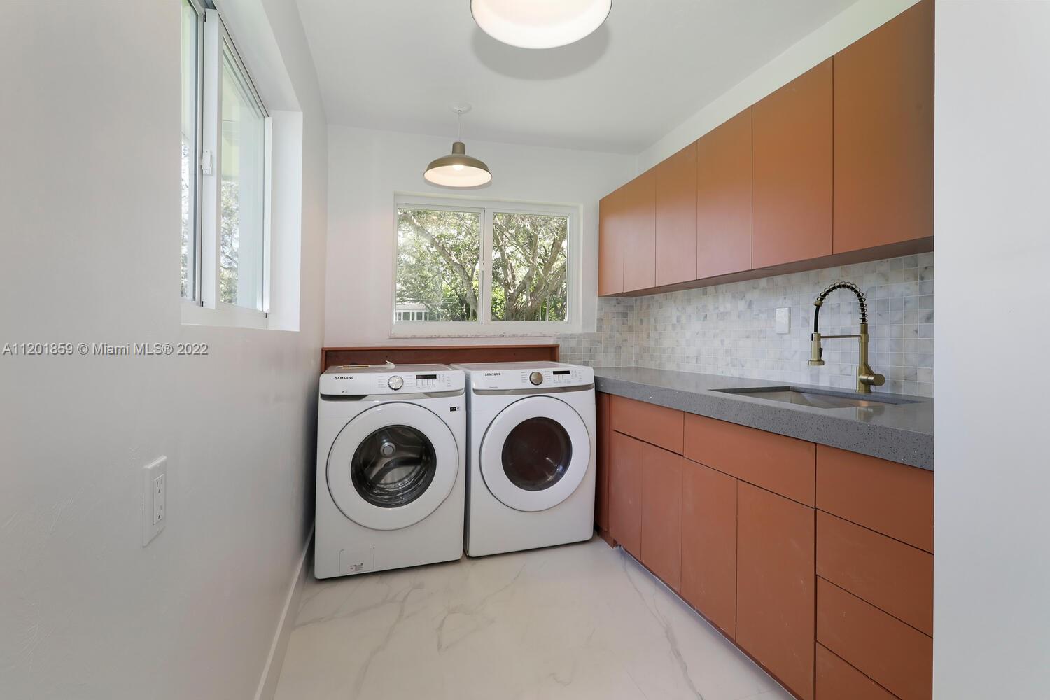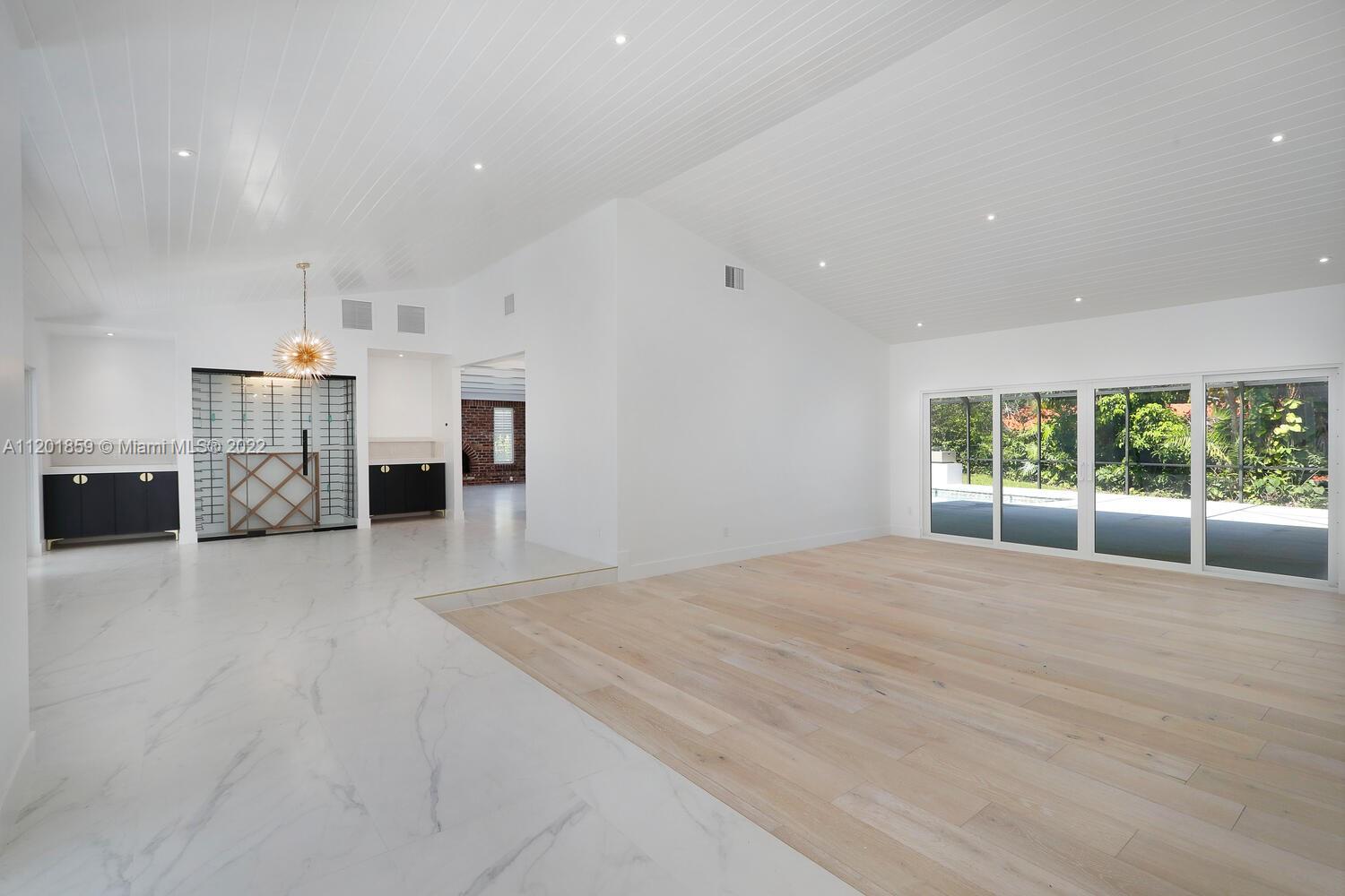 This turn-key 5/4 Pinecrest home sits on a 34,891 sqft lot. New tile roof & impact windows throughout. Features European porcelain floors, oak floors in living room, wood burning fireplace in family room & walk-in 220 bottle glass wine room in dining area of this open concept home. Oversized gourmet all Monogram kitchen boasts quartz countertops, gas range w/ griddle & oven, double French wall oven, under mount sink & drawer microwave. Primary bedroom w/ ample closets, spa bath complete w/ double shower & soaking tub. Additional four bedrooms include en-suite ideal for guests & a convertible home office w/ custom oak cabinetry. Bathrooms appointed w/ marble finishes. Outside areas w/ granite flooring including pool area ideal for entertaining. Gas powered fire feature and outdoor shower.