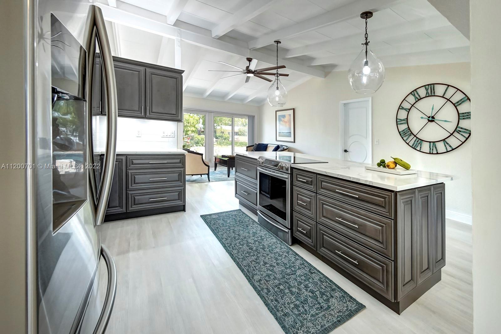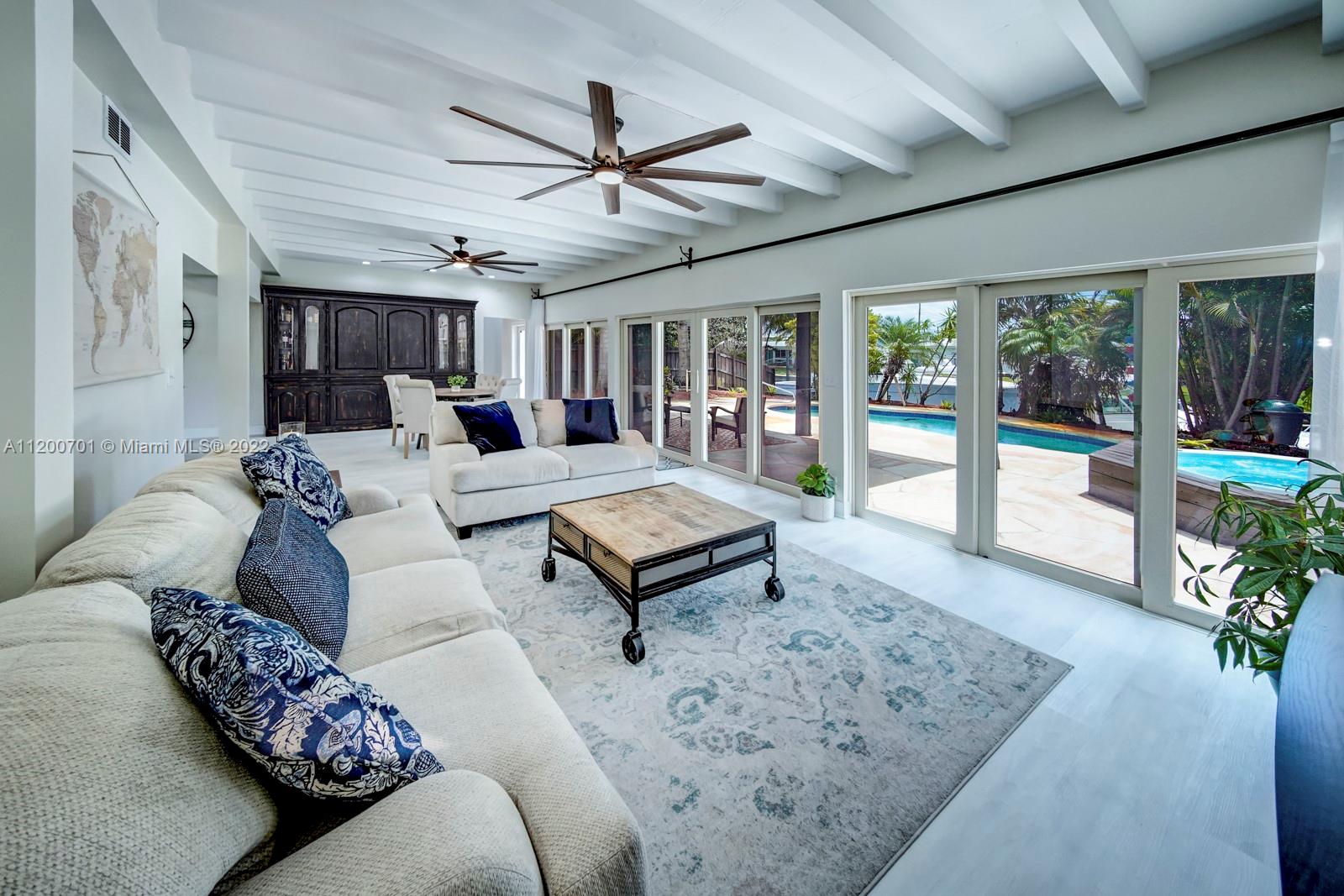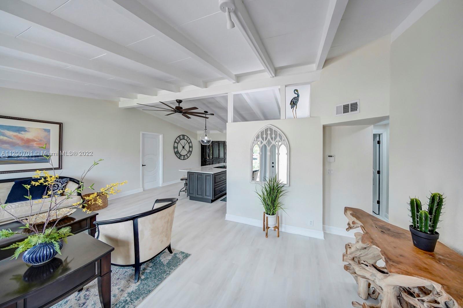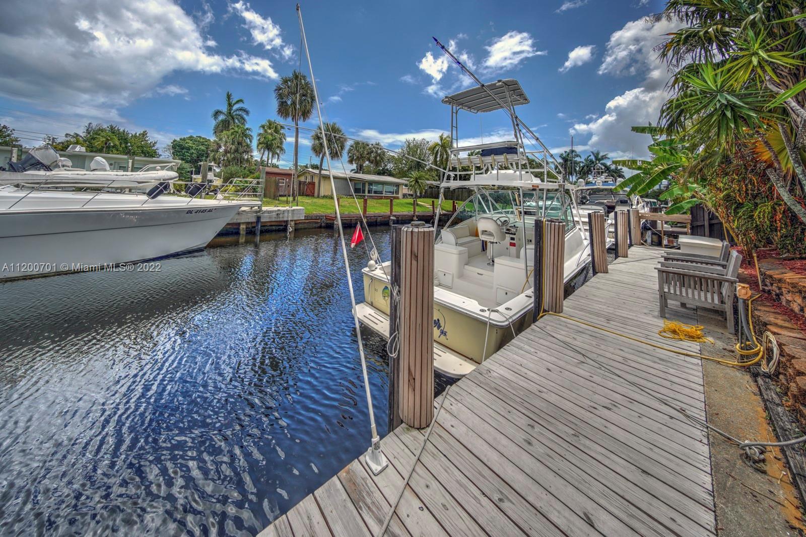 NEW PRICE! PRICED BELOW MARKET! PERFECT FAMILY HOME OR TURN INTO AN AIRBNB. This remodeled, deep water, no fixed bridges house! Featuring over 2395 sq ft this home has all the space you need to entertain. Vaulted exposed beam ceilings, all impact windows & doors. 2022 new roof, fresh paint interior & exterior, new lighting. Tankless WH, 2 new A/C's, new custom kitchen, oversized island w/ quartz countertops, high-end appliances w/induction cooktop. A tucked away master bed w/ seating area and a dreamy walk-in closet. Enjoy water views from your deck off the master while providing a covered patio below. Take a dip in the heated salt water pool/jacuzzi. 50ft dock with water and electric just redone. A short cruise to downtown Fort Lauderdale's best restaurants and historic landmarks.