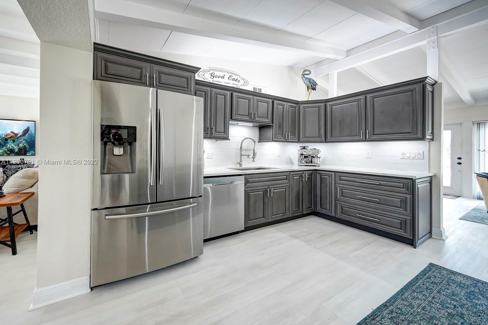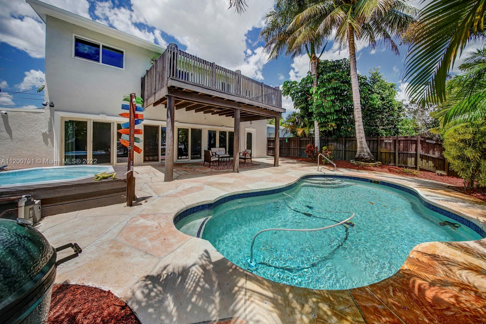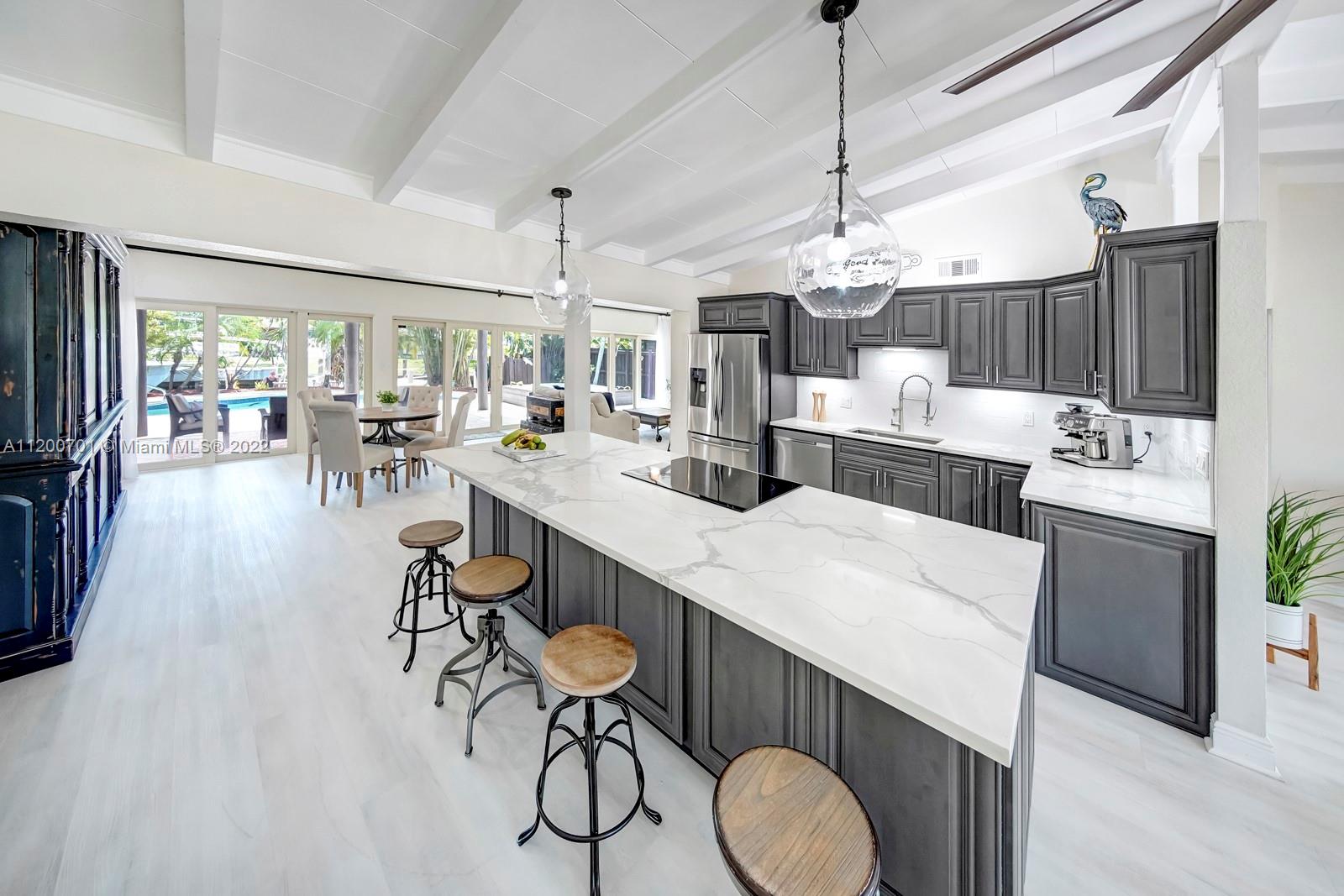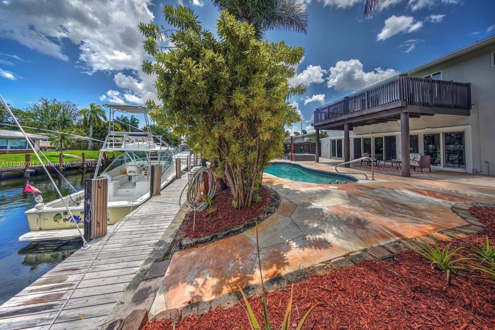 NEW PRICE! PRICED BELOW MARKET! PERFECT FAMILY HOME OR TURN INTO AN AIRBNB. This remodeled, deep water, no fixed bridges house! Featuring over 2395 sq ft this home has all the space you need to entertain. Vaulted exposed beam ceilings, all impact windows & doors. 2022 new roof, fresh paint interior & exterior, new lighting. Tankless WH, 2 new A/C's, new custom kitchen, oversized island w/ quartz countertops, high-end appliances w/induction cooktop. A tucked away master bed w/ seating area and a dreamy walk-in closet. Enjoy water views from your deck off the master while providing a covered patio below. Take a dip in the heated salt water pool/jacuzzi. 50ft dock with water and electric just redone. A short cruise to downtown Fort Lauderdale's best restaurants and historic landmarks.