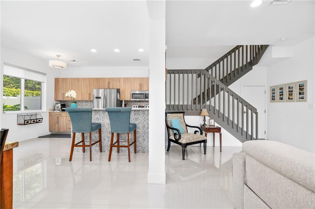 Remarkable, and luxurious, this custom 3BR 2.5BA corner unit townhome located in the heart of Pompano Beach boasts expert craftsmanship, design, and style. You will fall in love with the light, bright and airy flow through open kitchen, living, and dining room, perfect for entertaining guests. Beautiful 24X24 tile throughout the first floor, gorgeous high traffic water resistant laminate flooring upstairs. Upstairs features two generous guest bedrooms, and a spectacular executive suite with two walk in closets, private bathroom, and a private balcony! Plenty of outdoor space with a fenced in patio space, impact windows and doors throughout, and a two car garage. gated community with community pool, hot tub, and club house. All with a low maintenance fee. Come take a look today!