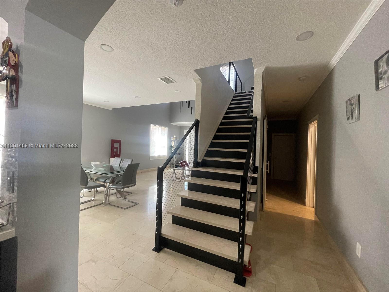 Upgraded home in Monarch Lakes! When you come in, you will feel at home, with it's modern space, high ceilings, and brightness. A spectacle stairway with stainless steel line rails, beautiful natural stone floors. Grand kitchen, gorgeous backsplash, granite countertops with waterfall, plenty of storage, lots of details through the house. Private Master bedroom downstairs, w/ built in walking closet, and an amazing bathroom, tub with jets, separated rain shower. Upstairs you have a great space, for the rest of the family, they can also enjoy their privacy. Take a quick view to the garage, with plenty of space for a new modern family. Back yard has all you need with built in grill and shade under a beautiful flower vine. Great neighbors, close to all main highways and shops.