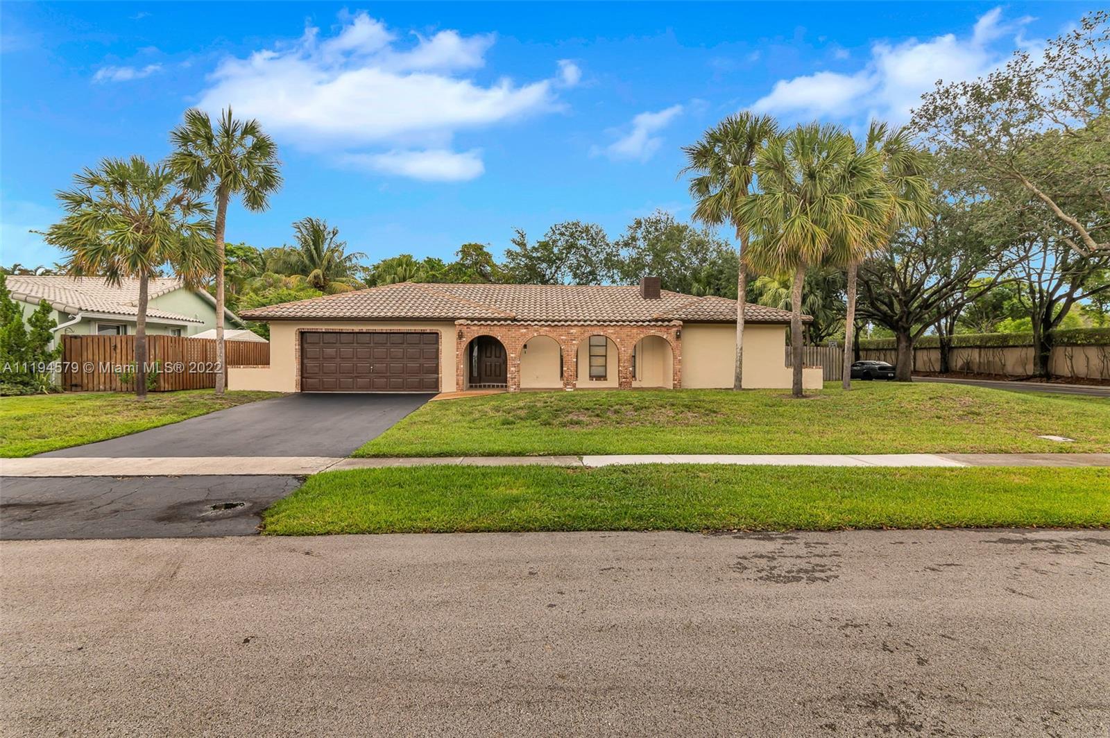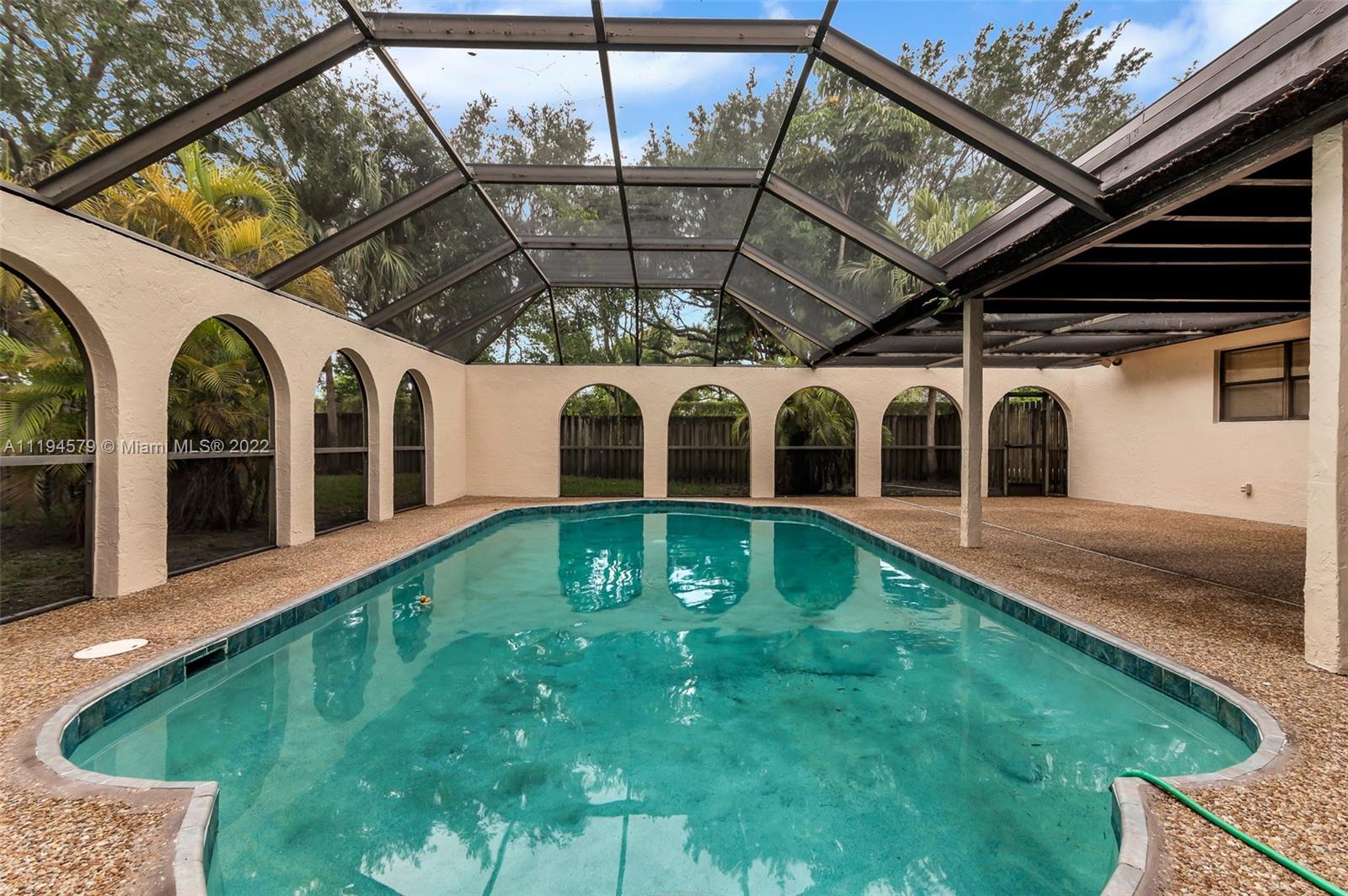 Spacious 5 bed/2 bath split floorplan home in the heart of highly desirable Jacaranda Lakes in Plantation. This well-loved home with vaulted ceilings is located on a corner lot with a screened in pool area with covered patio and private, fenced in yard perfect for entertaining. The exterior was just freshly painted & driveway re-sealed. The beautiful upgraded kitchen has new SS appliances, Roof (2005/6), Pool resurfaced (~2019), A/C replaced (~2019), W&D (2021). The 5th bedroom is currently being used as an office due to ideal separation from other bedrooms. Beautiful arches in both the front and rear give this lovely home great character. Community has a tennis court, playground & walking trail and is close to highways, restaurants and shopping.