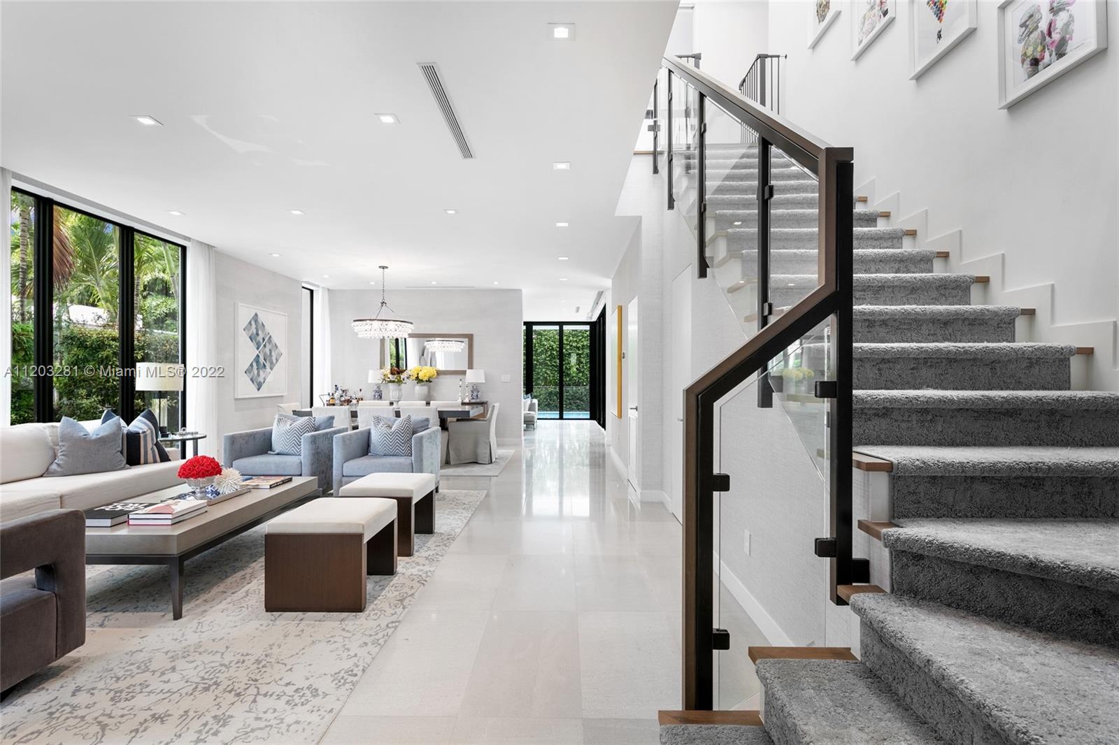 Contemporary Masterpiece situated on coveted North Bay Road. This custom built home boasts 4600 SF of designer curated interiors, top of the line finishes, 10' ceilings & a layout that is perfect for both family enjoyment & entertainment. Nestled behind private gates on quiet Upper North Bay, this custom build is conveniently located in between South Beach, Sunset Harbour & Bal Harbour where you'll find the finest shopping & dining Miami has to offer. The home's indoor outdoor flow is complimented by a large outdoor entertainment area w/ covered dining, lounge, summer kitchen, heated saltwater pool w/ glass pool fence, artificial turf yard & cabana bath. Features include Control4 system w/cameras, full generator, sonos, upstairs laundry, gym, office & gated entrance to your covered parking