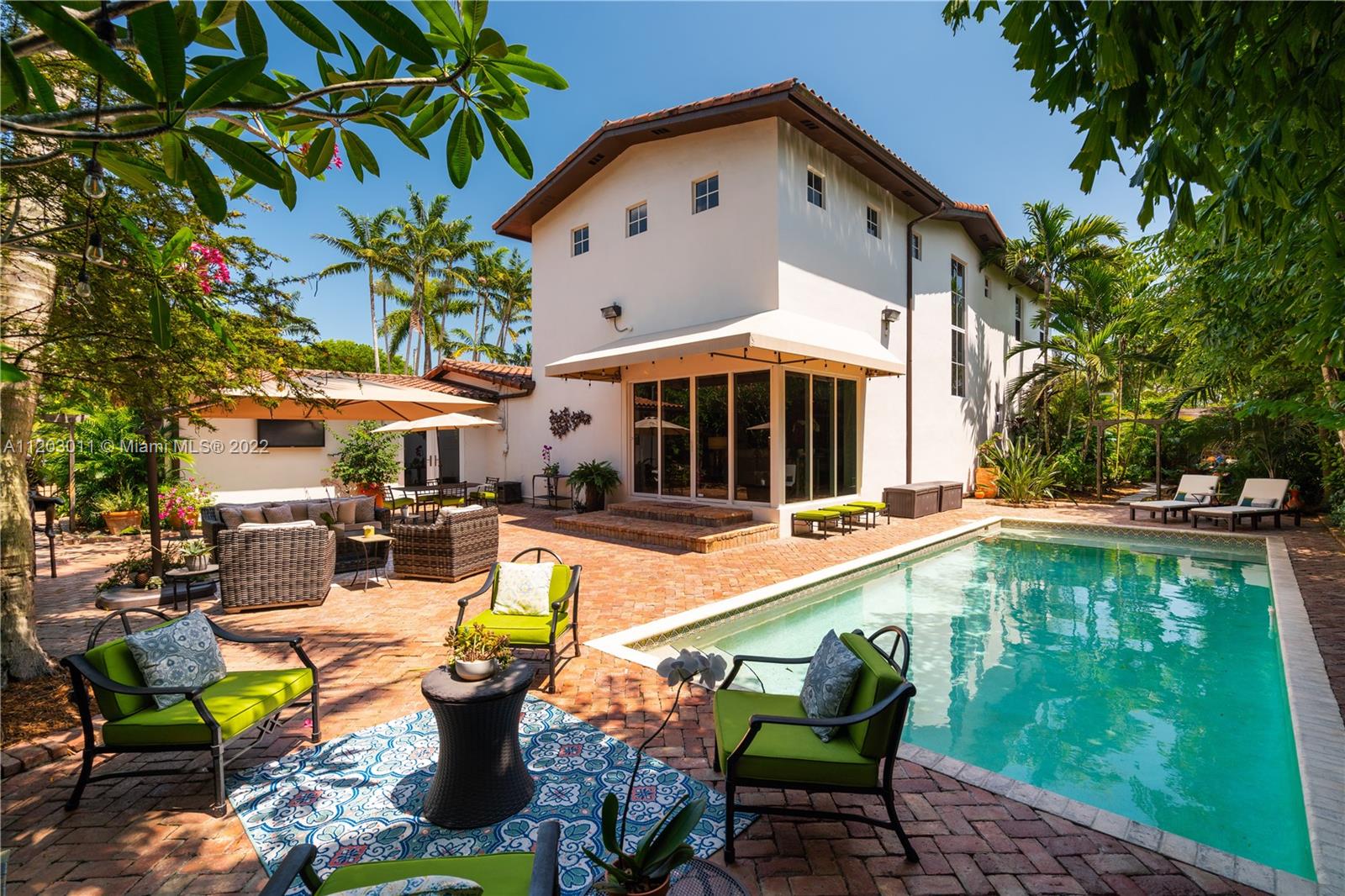 Stunningly remodeled in 2008, what a gorgeous six bedroom, two-story home this is! From the moment you step through the door, you sense the beautiful balance of elegance and space. The bright kitchen is anchored by a large island and bookended by a family room and dining room. A dramatic two-story living room, surrounded by panes of glass overlooks a lush, private pool and garden, an outdoors where all you can say is “wow.” The large primary suite includes a sitting area, spacious walk-in closet, and spa-like bath. This home has a tri-split floor plan…two bdrms upstairs, 4 bdrms downstairs split into two separate wings. 4,587 square feet under air, completely protected by impact glass. The sprawling brick driveway with double electric gates allows for ample parking. A Very Special Home.