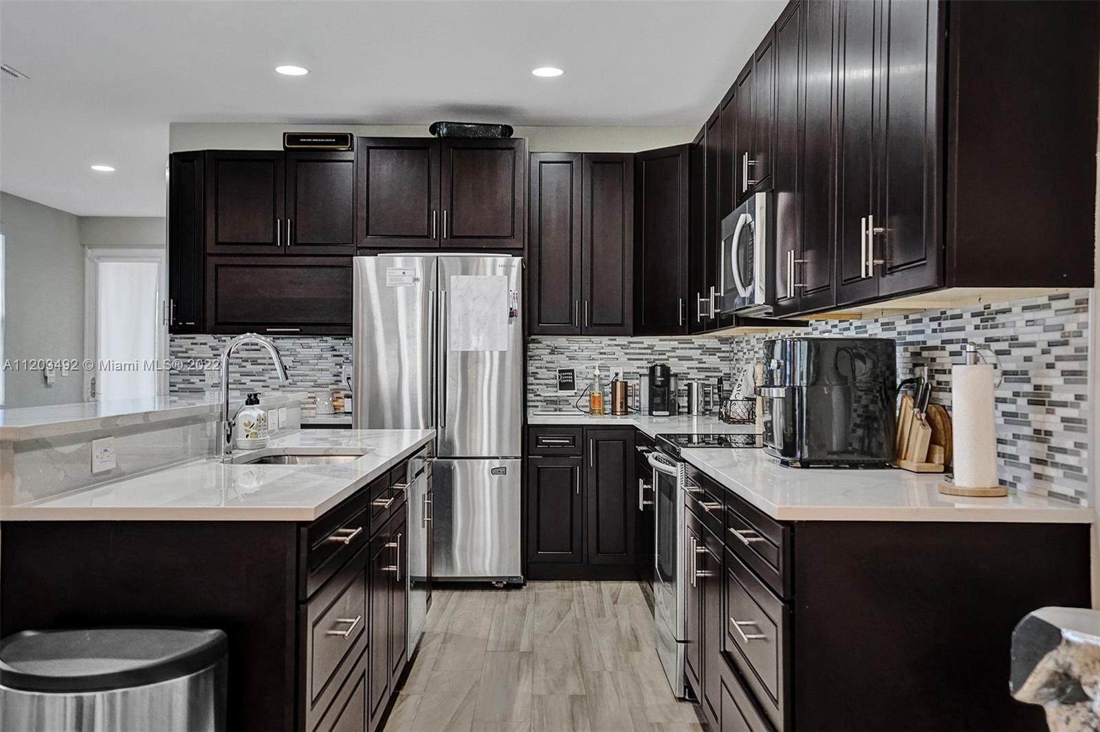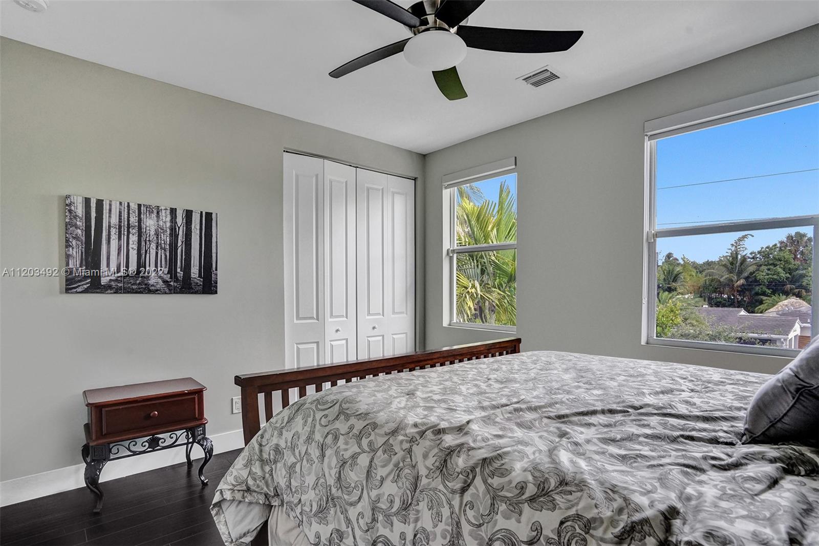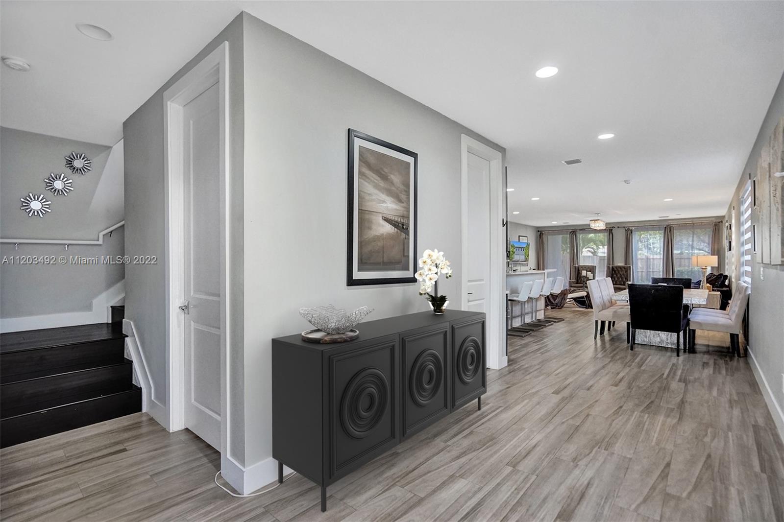 Beautiful townhouse in Croissant Park, Fort Lauderdale, over 2,500 sqft! Oversized 1.5-car garage provides space for a home gym, storage + vehicle. Large bedrooms, walk-in closets, bonus loft with wetbar, which can easily be converted to an office or 4th bedroom. Spacious fenced yard, room for pool or spa. Second level and staircase covered with opulent espresso hardwood. Property boasts high ceilings, custom-built closets installed throughout, and open floor plan, ideal for entertaining. Kitchen features huge island with luxurious quartz countertops, ample storage, & large walk-in pantry. Primary suite offers a spa-like bath with a separate oversized soaker tub and a private huge balcony. Whole Foods, restaurants & shops in neighborhood. Minutes from the beach, Las Olas & FLL Airport.