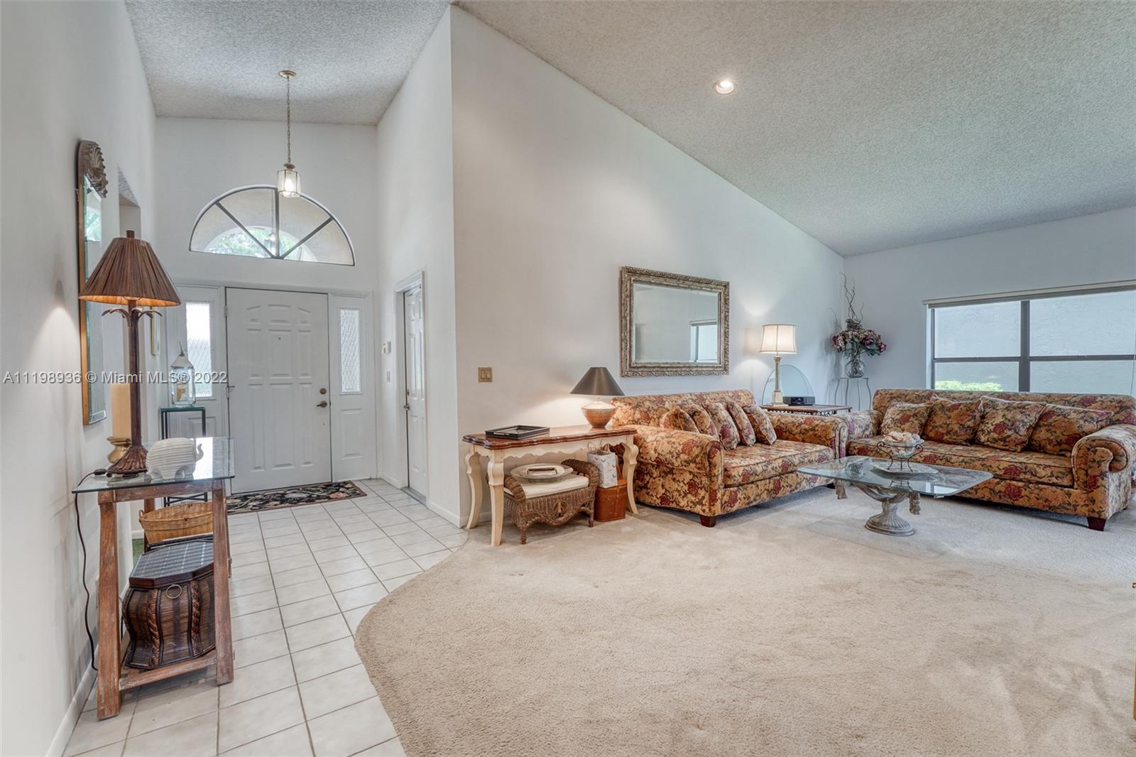 Located in highly desirable Fountain Spring, imagine this home as your future retreat. Enjoy the long Lake Views and southern exposure with an extended Patio area, and fenced backyard. Spacious living areas and Volume Ceilings, Open Concept Kitchen w/ newer laminate wood look floor & separate living room. Large primary bedroom w/ walk-in closet, & bathroom w/ dual vanity, separate tub & shower. 2016 water heater, ADT security system. Two car garage. Fountain spring is conveniently located walking distance to restaurants & shops and two grocery stores, including the recently renovated Publix. Walk to the beautiful community pool / clubhouse, and City Park with Basketball, Tennis & Sand Volleyball Courts, Shaded Playground & half-mile Jogging Trail with Exercise equipment.