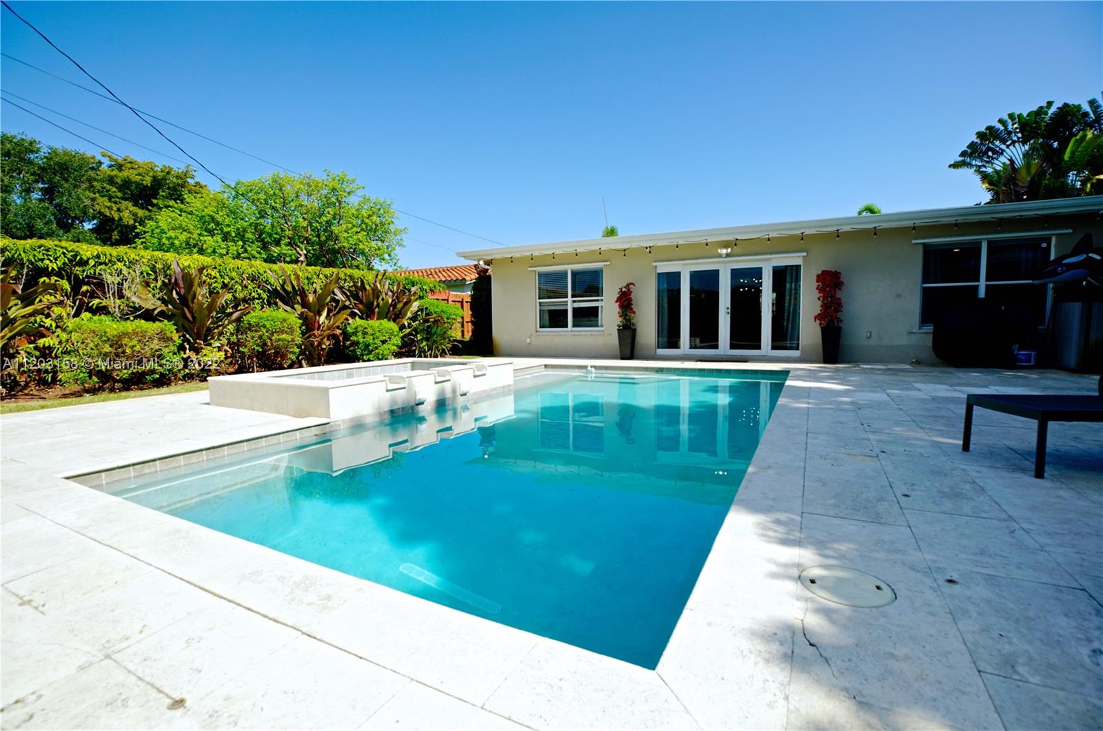 Welcome Home! Amazing and Modern 4 Bedroom/2 Bath Home, updated modern kitchen, wooden and tile floors, as new A/C unit. Enjoy the heated salt water pool and jacuzzi, surrounded with travertine floors and a beautiful garden. Perfect for a family, fully furnished and also a licensed airbnb short term rental income producing property. NO HOA. Minutes to the beaches, reataurants, shopping and Hard Rock.