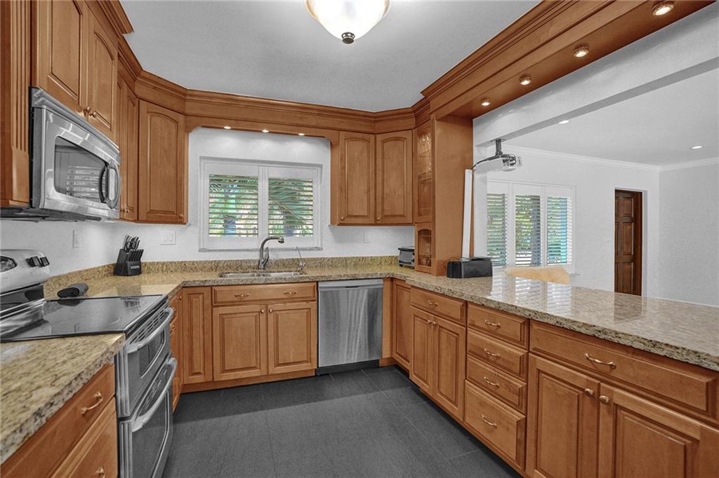 Nestled between the Atlantic Ocean and the Intracoastal, this beautiful and tastefully updated home is located in the sought-after and quiet beach side neighborhood of Dolphin Isles. Spacious open kitchen w/ granite counters and stainless appliances, impact glass throughout, stylish updated bathrooms and a cool combination of tile and wood flooring. Wonderful 3/3 floor plan with dual primary bedroom suites, both offer direct access and views to the oversized and totally private garden that adjoins Birch State park. Relax on your spacious lanai or cool down in the resort style salt water pool and spa. This unique corner lot offers total privacy with no neighbors to the east or to the south and boasts private neighborhood gate access to the park just a few feet away. Bayview school district!