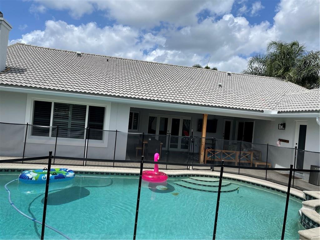 Beautifully remodeled single-family Home situated on an oversized corner lot. Enter into an airy open floor plan with 13 ft volume ceilings and view of sparkling pool and spa. Newly renovated eat-in gourmet kitchen with quartz courter tops and white cabinets. Luxurious marble tile and laminate floors add to contemporary decor. Master bedroom has an en-suite cabana bathroom and 2 ample walk-in closets. All bedrooms have laminate floors. 2nd bath has double sink and opens to patio and pool area. Impact windows and doors; most windows covered with Plantation Shutters. Paver tiles in entry and patio with shaded covered area. New White PVC fence for privacy that obstructs partial lake view. Wonderful central location with easy access to great schools, parks, shopping, restaurants.