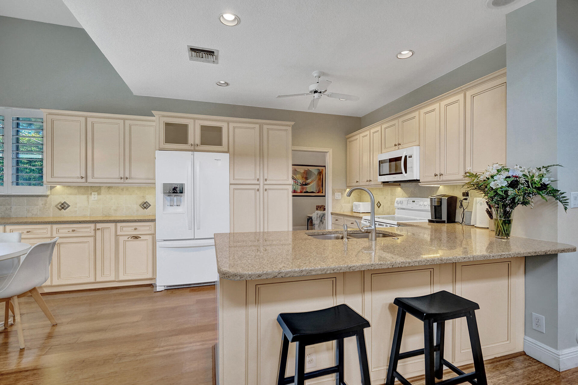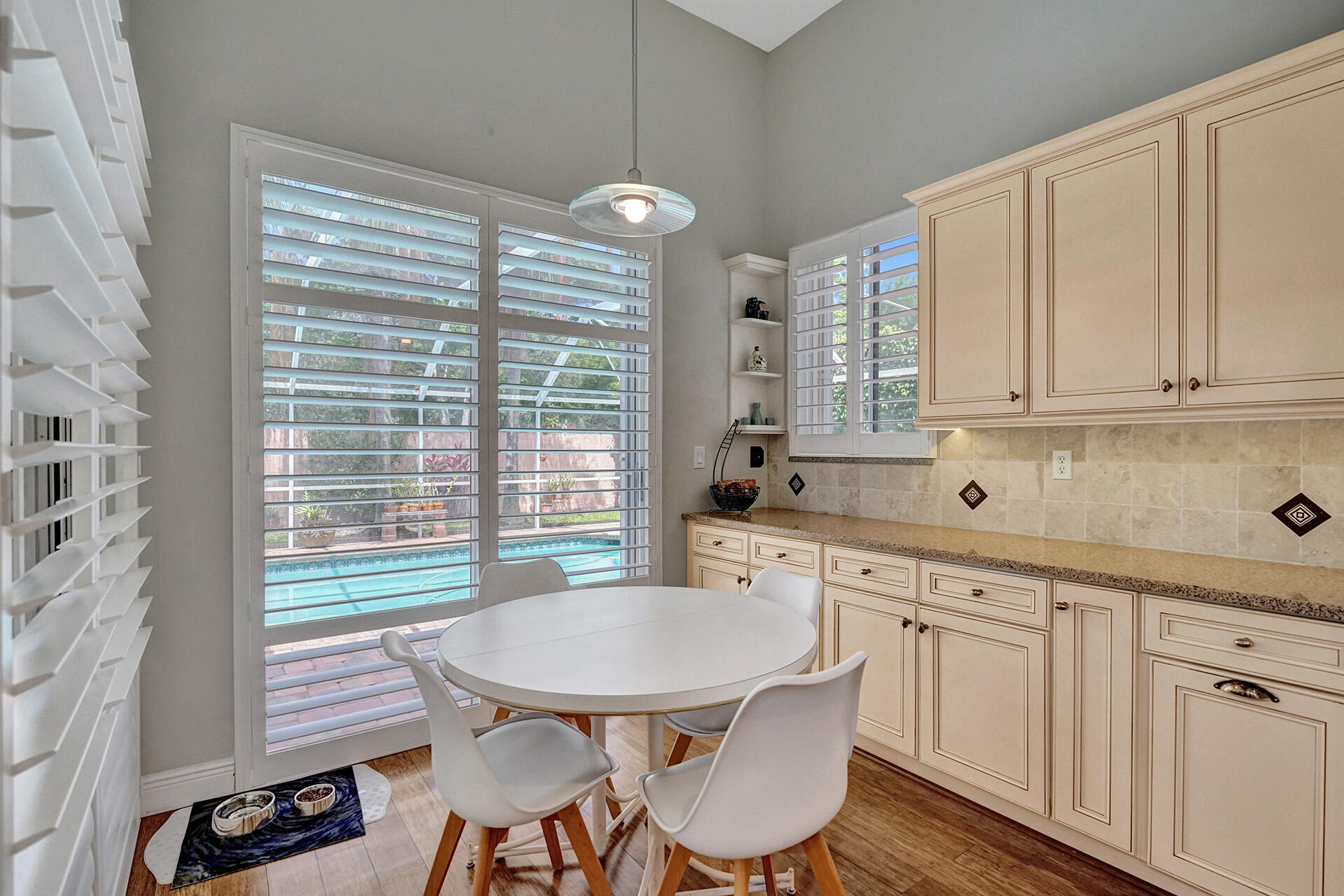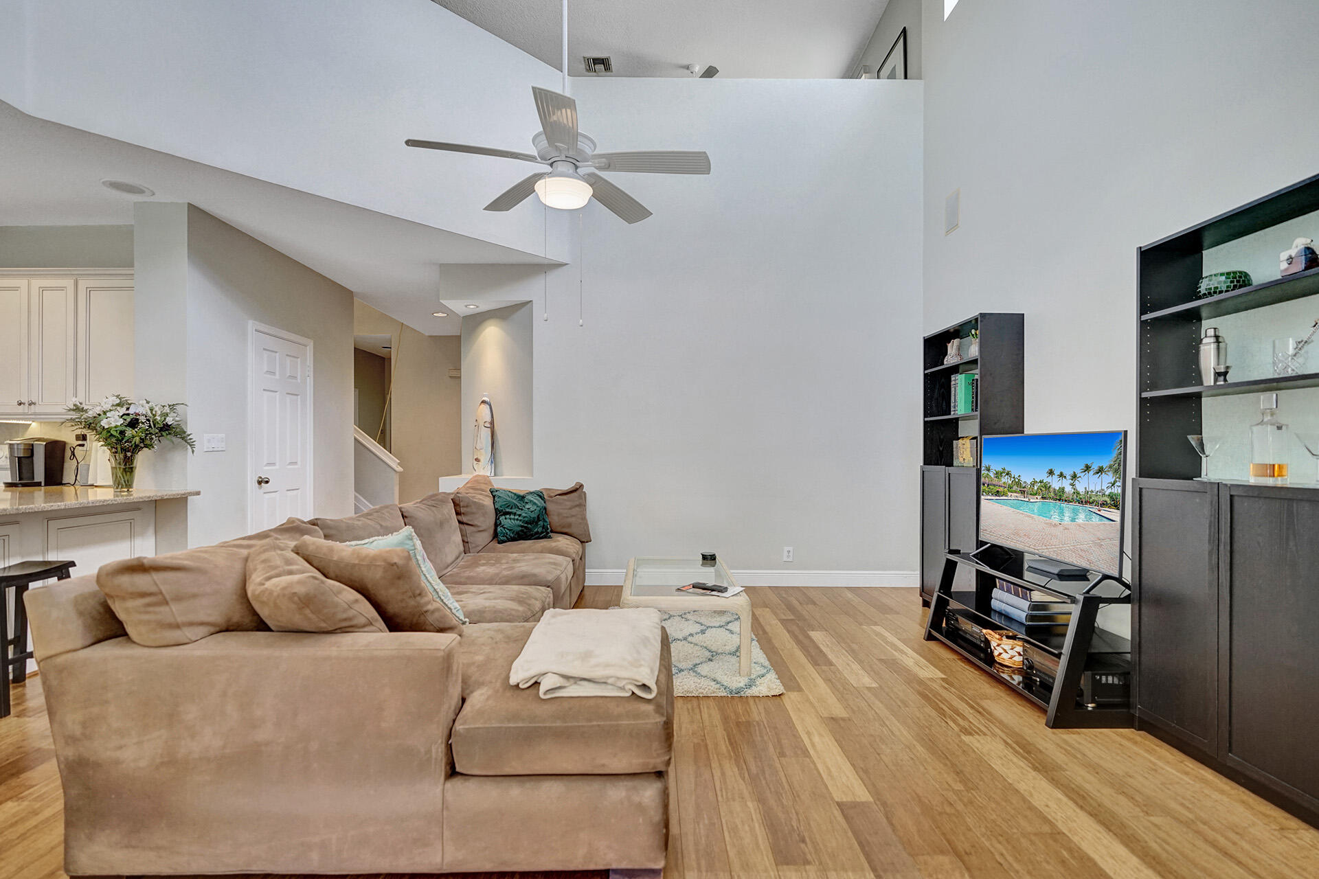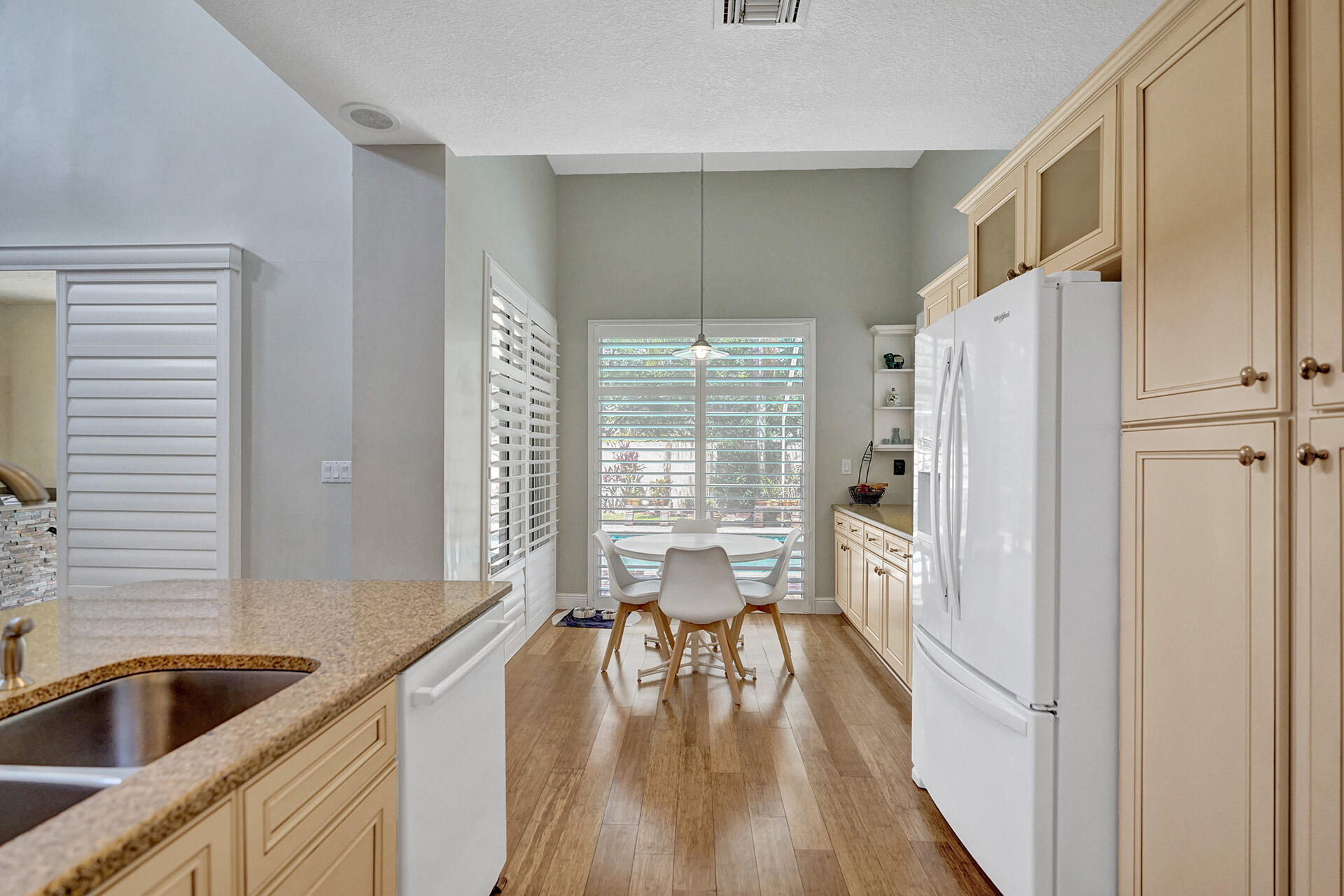 Everything you could want in a home in the highly sought-after community of Embassy Lakes is right here! Step into this spacious, light and bright pool home featuring 4 bedrooms, 3 1/2 bathrooms and a loft that can be utilized as an office, game room or a playroom. The vaulted ceilings and large windows allow an abundance of natural light to flow into the house. Stylish, water-resistant bamboo flooring is featured throughout the first floor. The kitchen is open concept to the family room and has upgraded antique white soft close cabinetry with quartz counters, premium roll out shelving in the pantry and an extended built-in area perfect for a coffee bar, and for maximum storage. Order take-out from an impressive list of neighborhood hot spots or prepare your own culinary creation in o