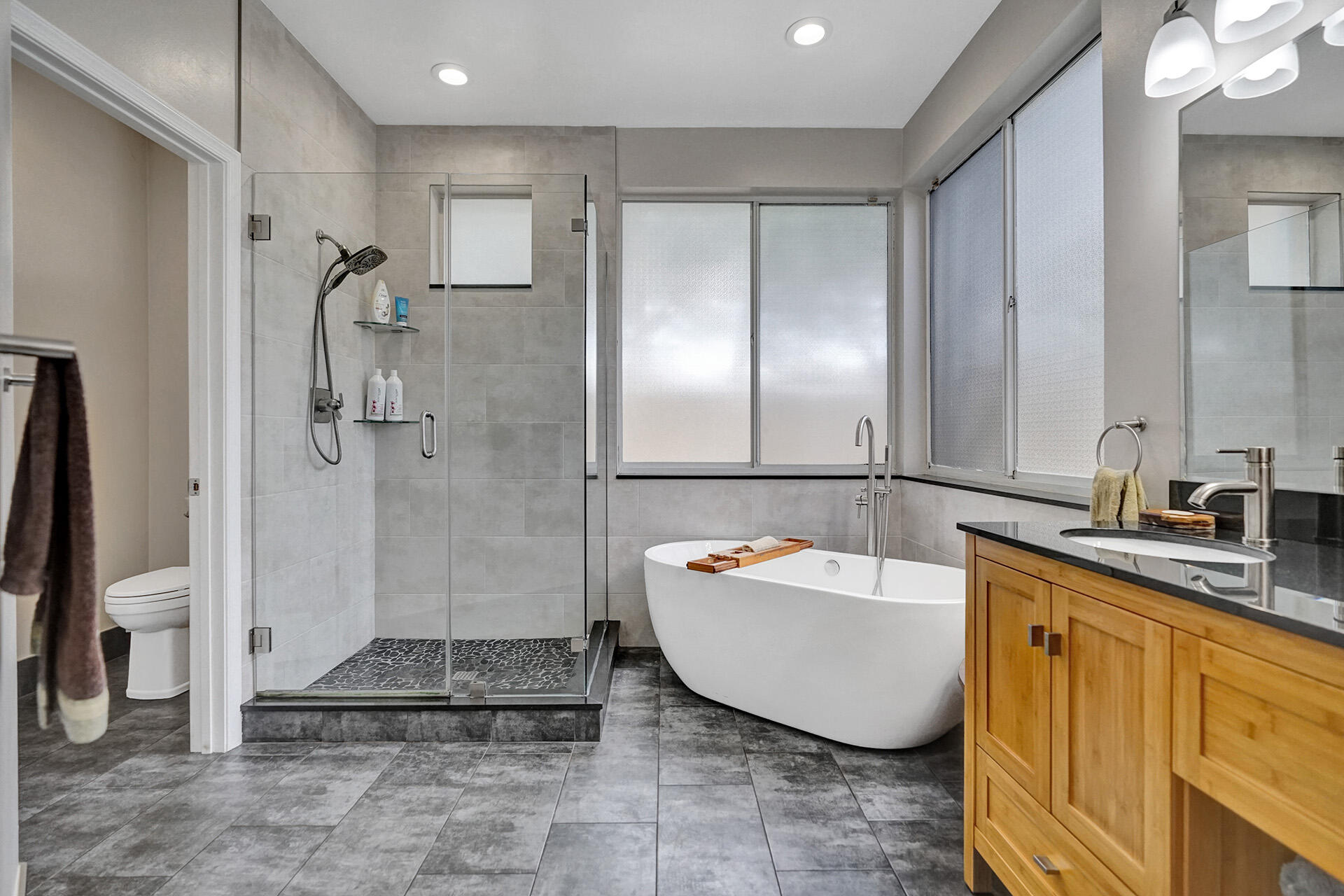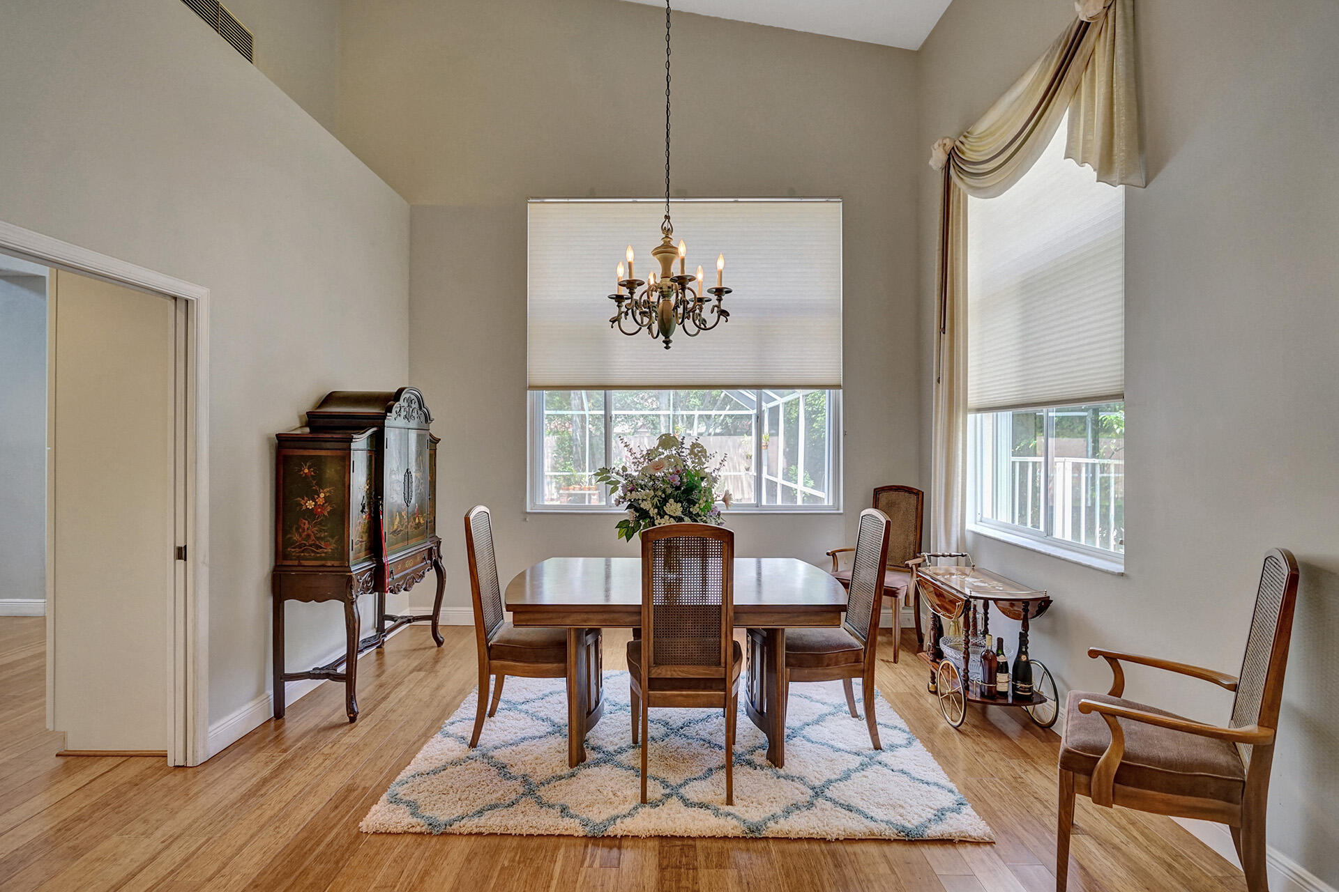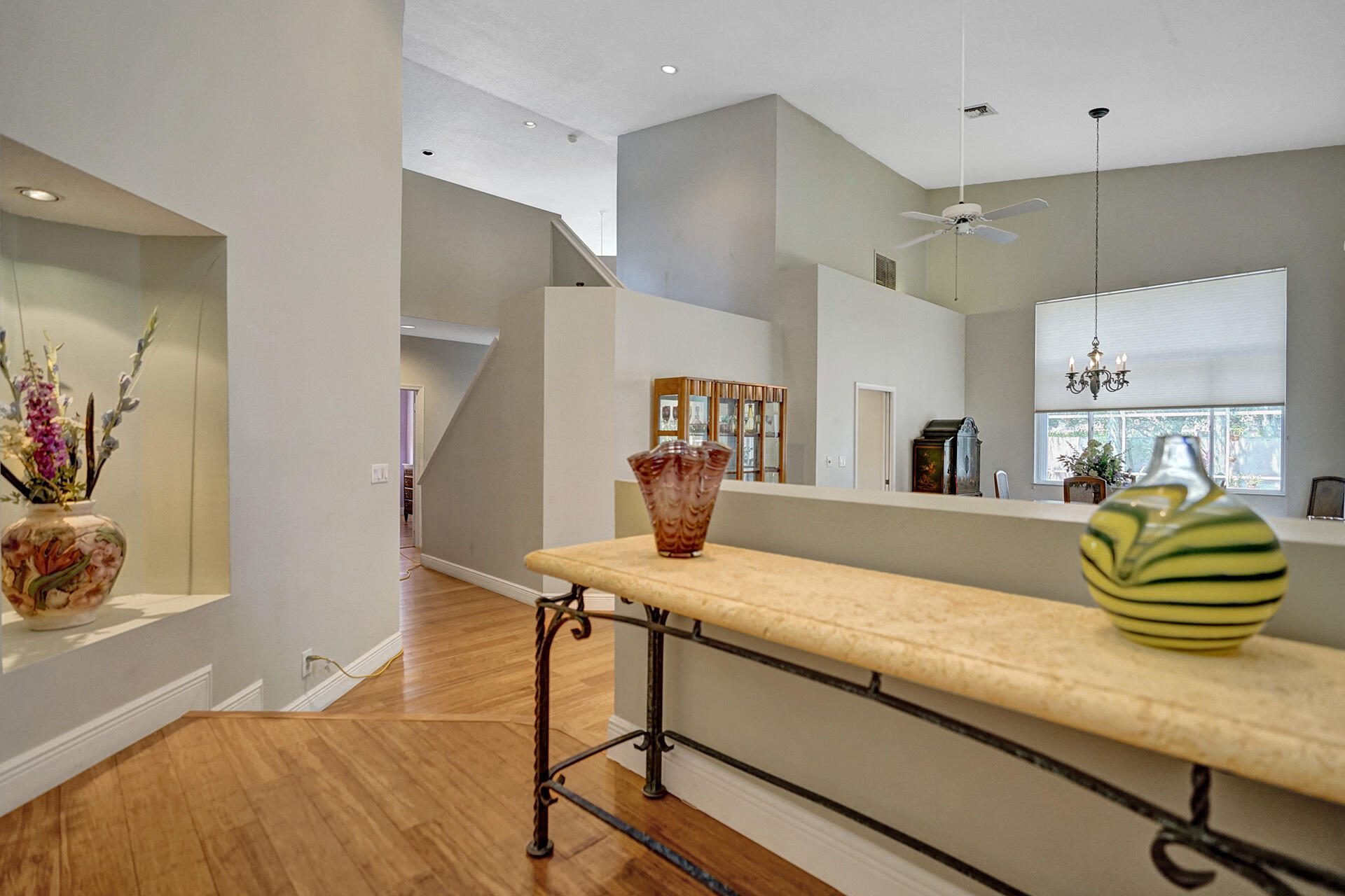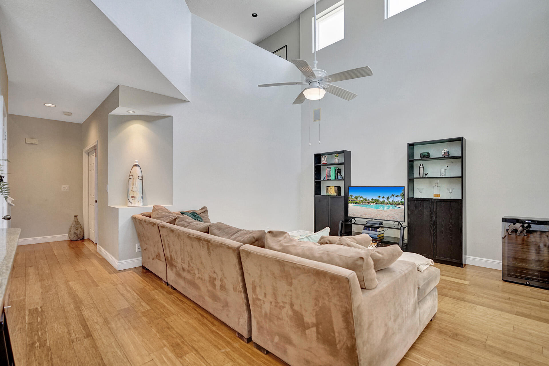 Everything you could want in a home in the highly sought-after community of Embassy Lakes is right here! Step into this spacious, light and bright pool home featuring 4 bedrooms, 3 1/2 bathrooms and a loft that can be utilized as an office, game room or a playroom. The vaulted ceilings and large windows allow an abundance of natural light to flow into the house. Stylish, water-resistant bamboo flooring is featured throughout the first floor. The kitchen is open concept to the family room and has upgraded antique white soft close cabinetry with quartz counters, premium roll out shelving in the pantry and an extended built-in area perfect for a coffee bar, and for maximum storage. Order take-out from an impressive list of neighborhood hot spots or prepare your own culinary creation in o