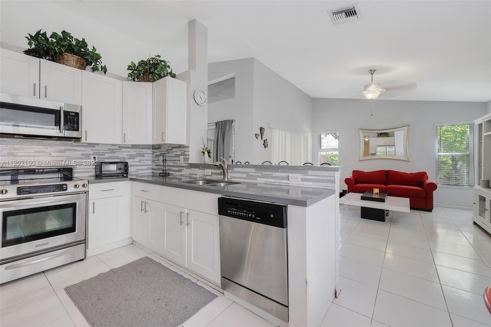 FABULOUS LAKE front one story 4 bedroom 3 bathroom Home with a 2 car garage in the NO HOA quiet Westchester neighborhood of Coral Springs with its own private dock - WOW. This Home is located close to schools, just a few minutes away from Sawgrass/I75. A few steps away from golf & a wonderful little walking park. Check - It has a NEW ROOF and NEW AC and Water Heater too (2020). Very spacious bedrooms with laminate wood floors & TILE through out the rest. A PRETTY Kitchen boasts quartz countertops, newer cabinets & stainless steel appliances. A HUGE screened Patio overlooking the most peaceful setting, IT'S JUST MAGICAL. Very close to Ice Arena, Sportsplex, Regional Park, Dog Park, Community Garden & Aquatic Center. Don't wait on this honey of a home !