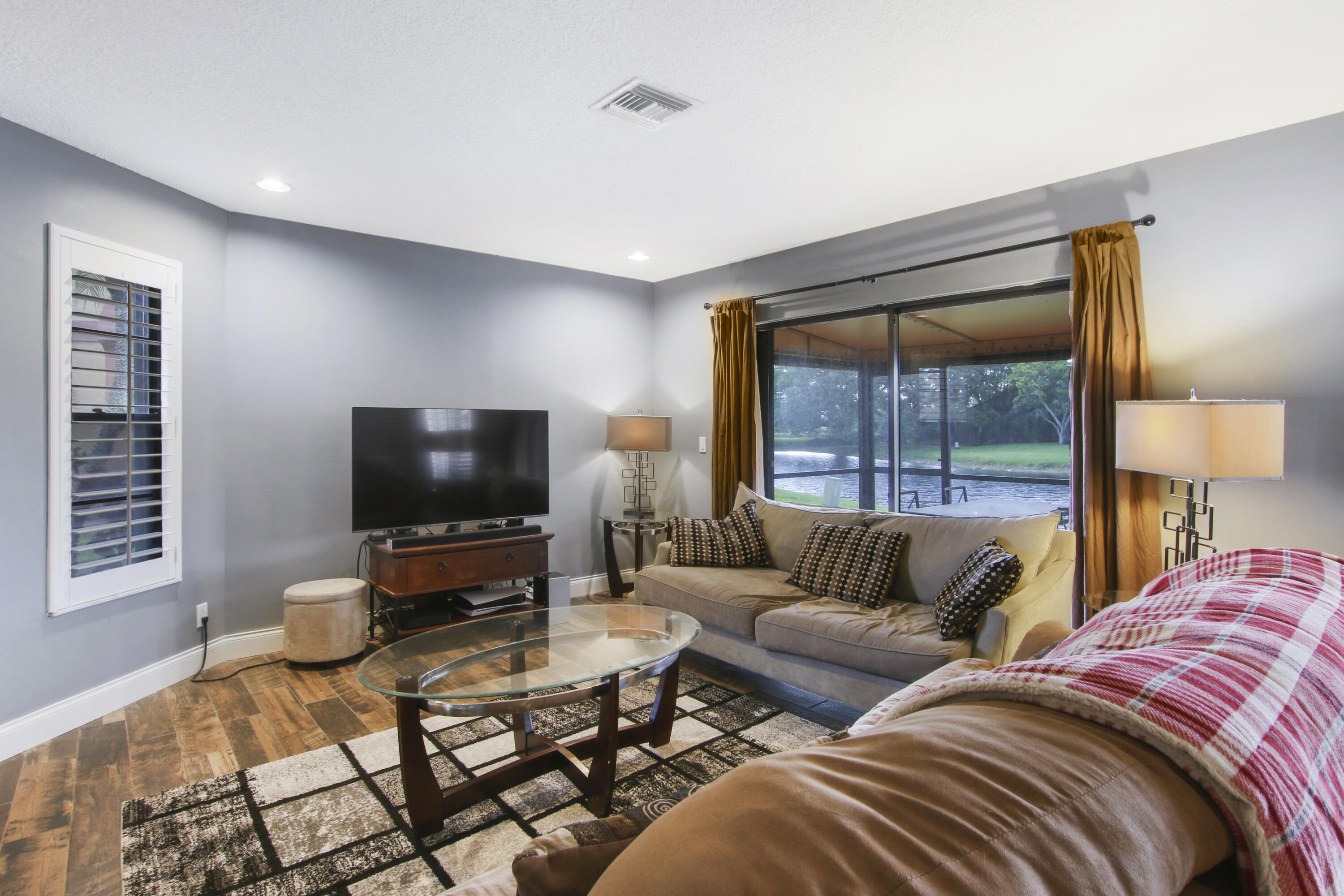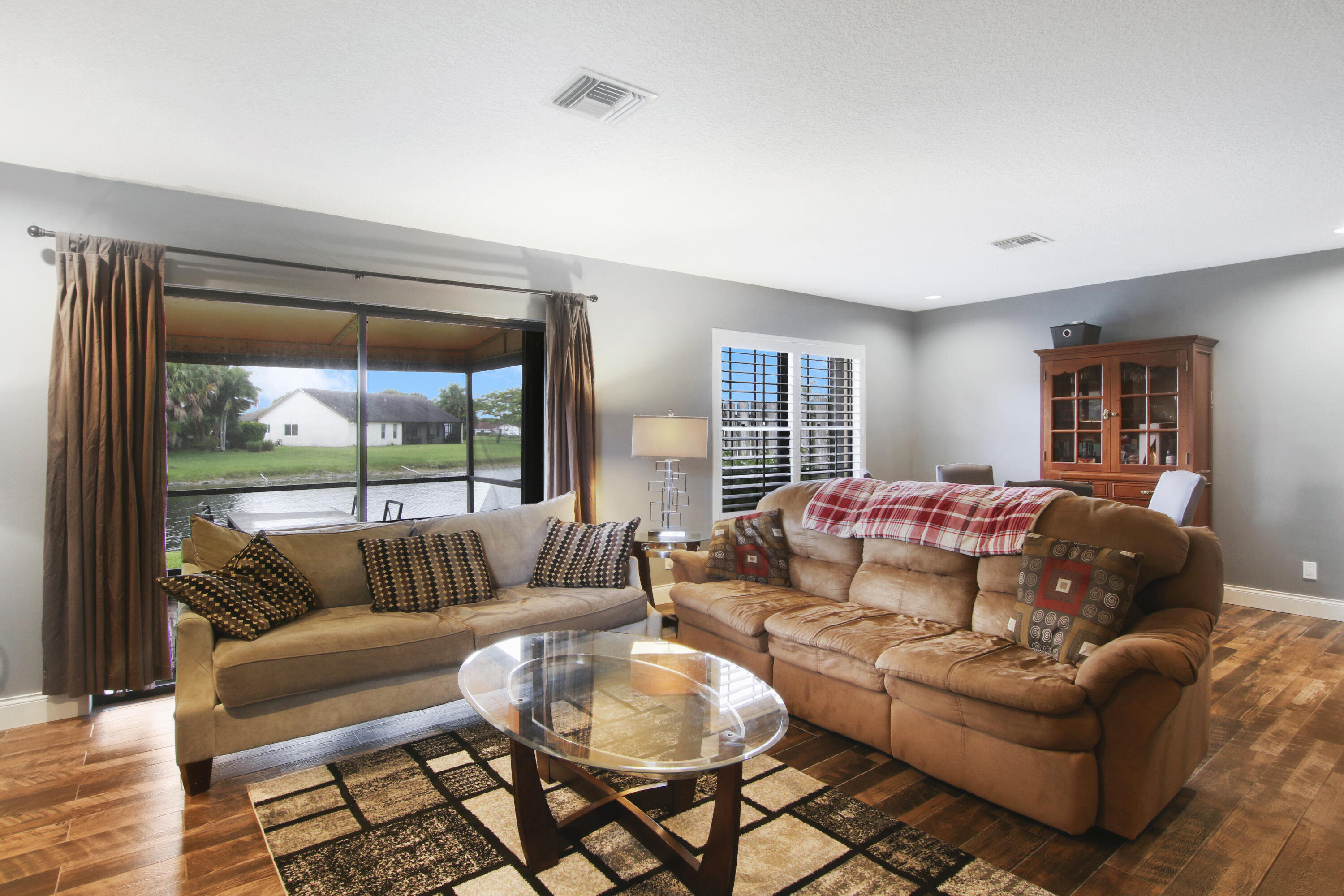 Come see this lovely and spacious 3 bedroom / 2.5 bath, 2 car garage, townhome on the water in Boca Fontana. All age community and pet friendly. SERENE lake views. Located on a dead end street and just a short walk to the pool, clubhouse and tennis courts. Great views from the large living/dining room. The 3 bedrooms are upstairs. Master bedroom with water/canal view with large roman tub, separate shower PLUS a huge walk in closet. A screened in patio for dining and grilling overlooking the lake. Centrally located with easy access to nearby shopping, movies, restaurants & everything Boca Raton & South Florida have to offer. Roof (2009), AC (2018), Water Heater (2015), Accordion Shutters (Complete 2019), Hurricane rated front door (2019).