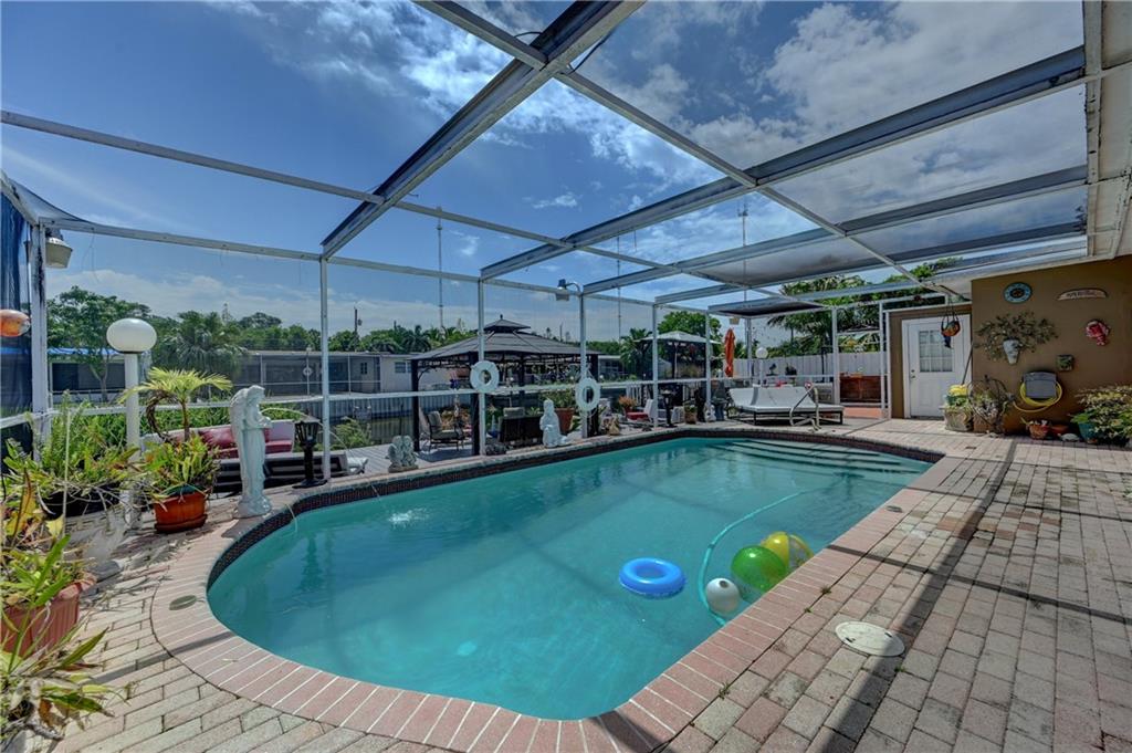 Welcome home to this 3/3 waterfront/pool home in South Miramar. This single story home features: 2018 roof, 2019 water heater, hurricane shutters, impact door & windows, tile floors throughout, French doors, formal living & dining rooms, family room, eat-in kitchen w/Stainless Steel appliances and His/Her closets in Master. Your backyard oasis is perfect for entertaining with a separate bathroom, screened-in patio & pool and your own private dock overlooking serene water views. Solar panels reduce your FPL bill! Best of all NO HOA! Close to parks, schools, shopping and dining. LARGE (friendly) DOG may be loose