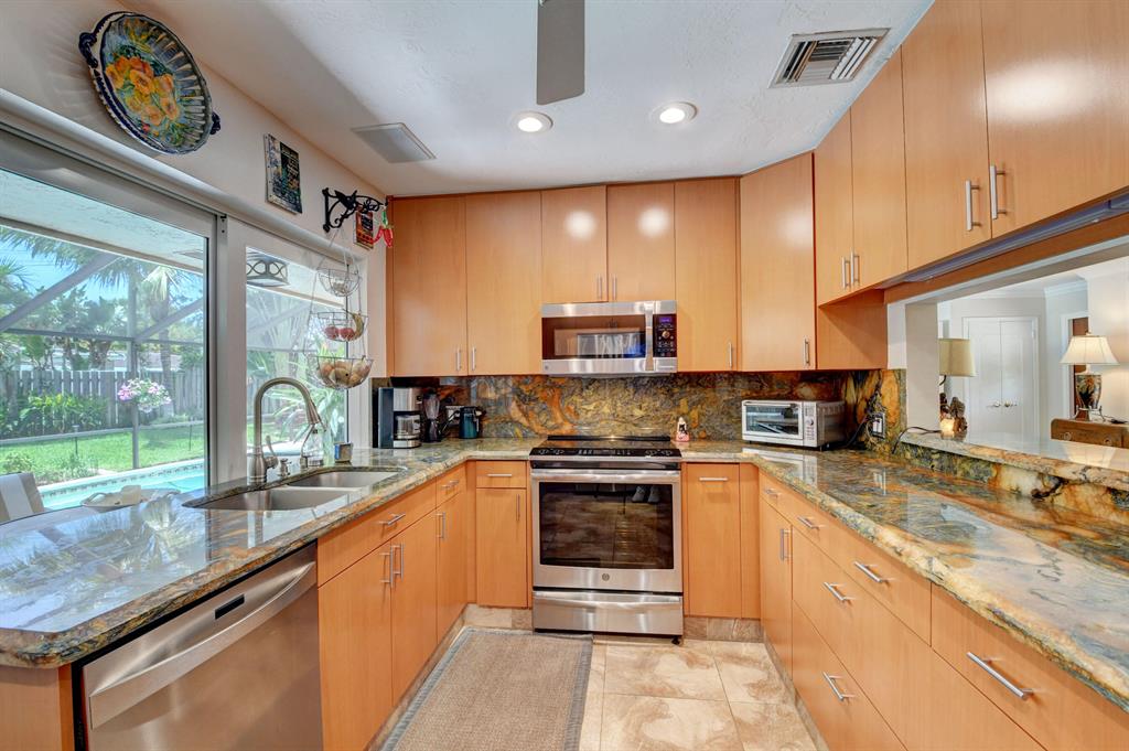Updated 3/3 PLUS media room which can be converted back to 4th bedroom in the highly desirable neighborhood of Royal Oak Hills. Features include heated, salt water pool, fenced backyard, circular brick-pavered driveway and walkway, 2 car garage, split bedroom floor plan, roof replaced 2014, impact windows and doors, pipes sleeved 2022, AC replaced 2019, underground electric wires, professional landscaping and so much more. Minutes to shops, beaches, Boca Downtown and A rated schools. New Brightline Station coming in 2023.