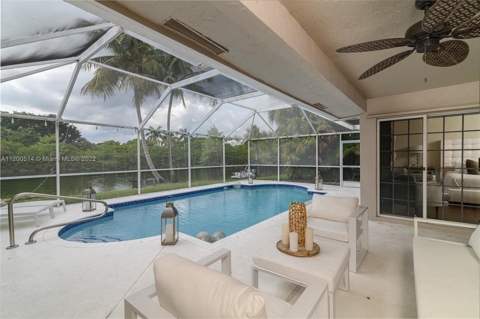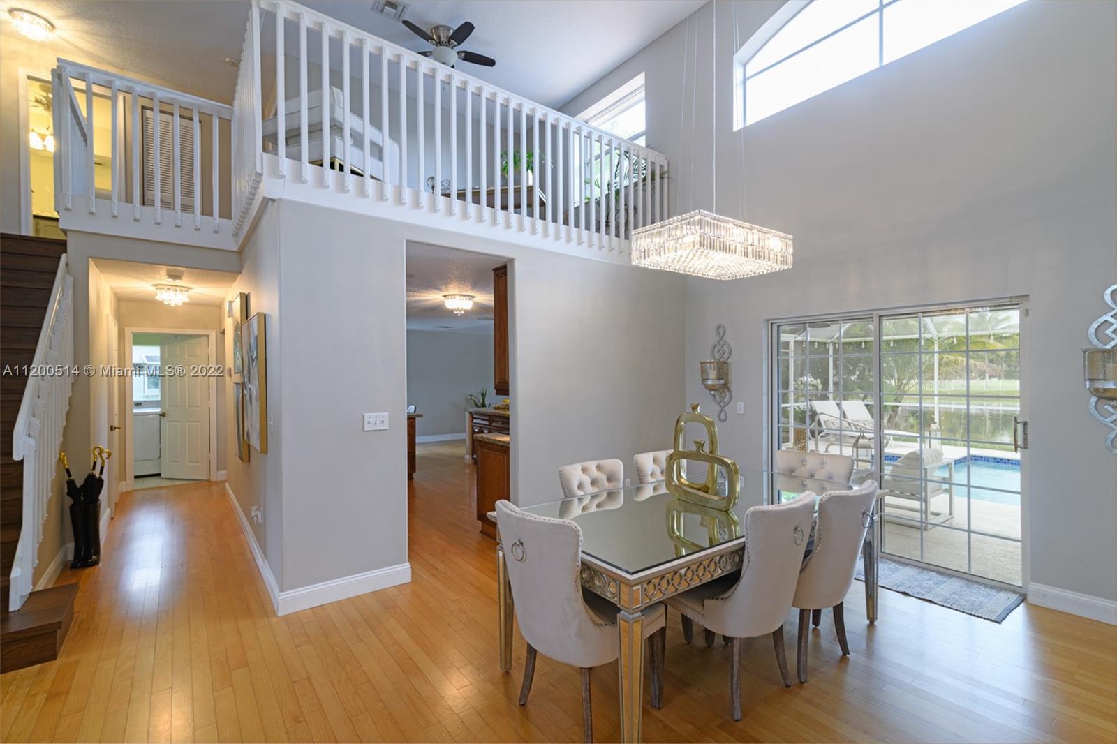 BEAUTIFUL HOME ON A SPARKLING LAKE IN HIGHLY SOUGHT AFTER SILVER LAKES - This spacious four bedroom, two and a half bath home sits on an oversized lake lot with a screened pool. Open floor plan with soaring two story ceilings and a views the wide and sparkling lake from almost every room. Large Primary Suite on the main floor with engineered wood floors and an ensuite with soaking tub and stand alone shower. Large kitchen with granite countertop, lots of storage, stainless steel appliances is open to additional dining space and spacious family room. Second floor features 3 additional bedrooms and full bath plus a loft that can be used as work from home office or play room. Manicured lawns flanked by mature trees and has a private backyard with magnificent sunset views over the lake.