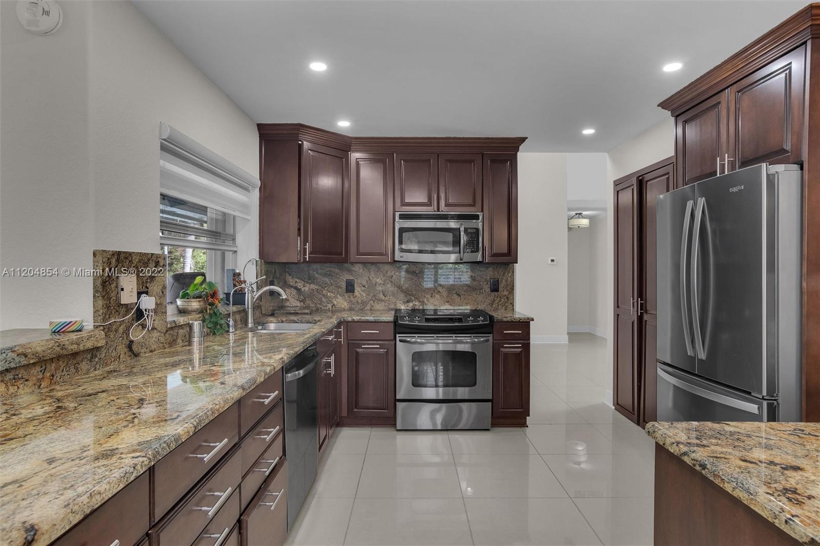 Price to Sell!!! A+ School district within two miles, Lake view from the sidewalk trails. Updated and well maintained home . Master bedroom on the first floor has a bathroom with a standing shower and view of pool area & lake of Silver lakes. Second floor offers a Loft or flex fifth bedroom. This home features 24x24 ceramic tile on the first floor. The second floors has 3 bedrooms and 1 full upgraded bath, Custom gourmet kitchen with granite counter tops, GE Stainless steel appliances, granite bathroom counters, recessed lighting, accordion shutters & French doors. Enjoy the screened pool with an oversize fenced patio landscape, beautiful lighting. Freshly painted from interior and exterior, sunrise views from the upstairs rooms & master bedroom. Hard to find an over-sized lot.