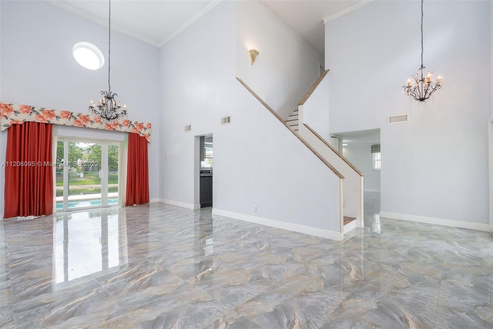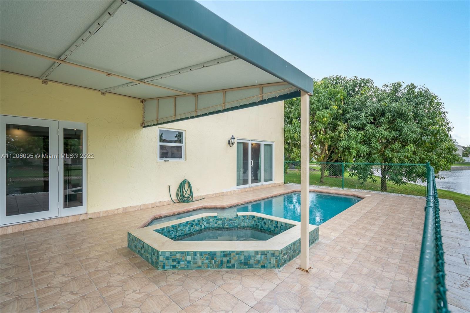 This spacious 2-story waterfront pool home on culdesac street features a newer roof 2016, impact glass doors & windows throughout 2018 & is totally carpet free. Large inside laundry room & 2 car garage. Remodeled kitchen complete with granite countertops. Pool & spa have electric heater while enjoying oversized covered deck with beautiful water views. 2 story ceiling in Living room & dining room with great natural light. The wall to the 4th bedroom has been opened to use as a sitting room, office or nursery off master but can easily be put back so it can be used as a 4th bedroom. Enjoy this great location, convenient to a beautiful park, schools, shopping, & major highways for great access to Miami or Ft Lauderdale. Low HOA fees are only $115 per quarter. Vacant & Ready for Quick closing!