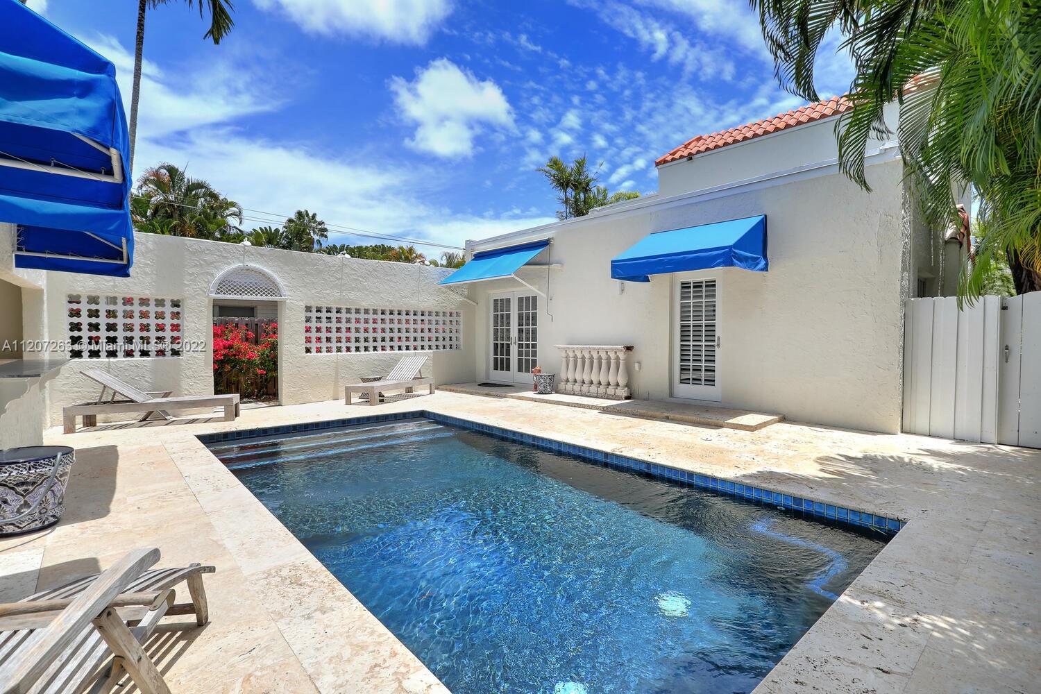 Lovely home on a quiet cul-de-sac street in North Coconut Grove. Meticulously restored & updated (All impact glass). Elegant, light-filled living room w/12 ft. high beamed ceilings, wood flooring & fireplace. Chef’s kitchen features wood cabinetry, stone countertops and a commercial-style gas range. Main house has 3BR’s/2BA’s + formal living & dining room, as well as a breakfast room. 2nd level master suite offers a sitting area and a large bath w/ frameless glass shower & soaking tub. A walled & ultra-private courtyard w/pool and outdoor bar area, ideal for entertaining. 2-story guest house features living area + 1BR/1.5BA’s. Walk or bike to bayfront parks, marinas and to the Grove village’s galleries, boutiques & cafes. Minutes to downtown, MIA, Brickell, Key Biscayne & the Beaches.