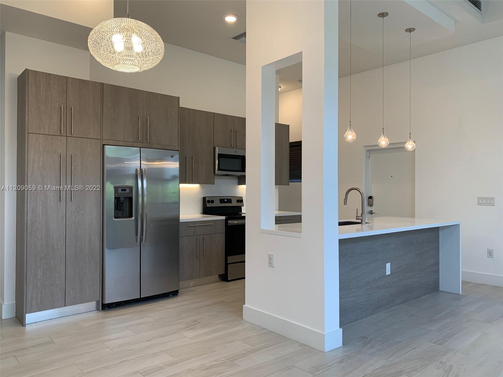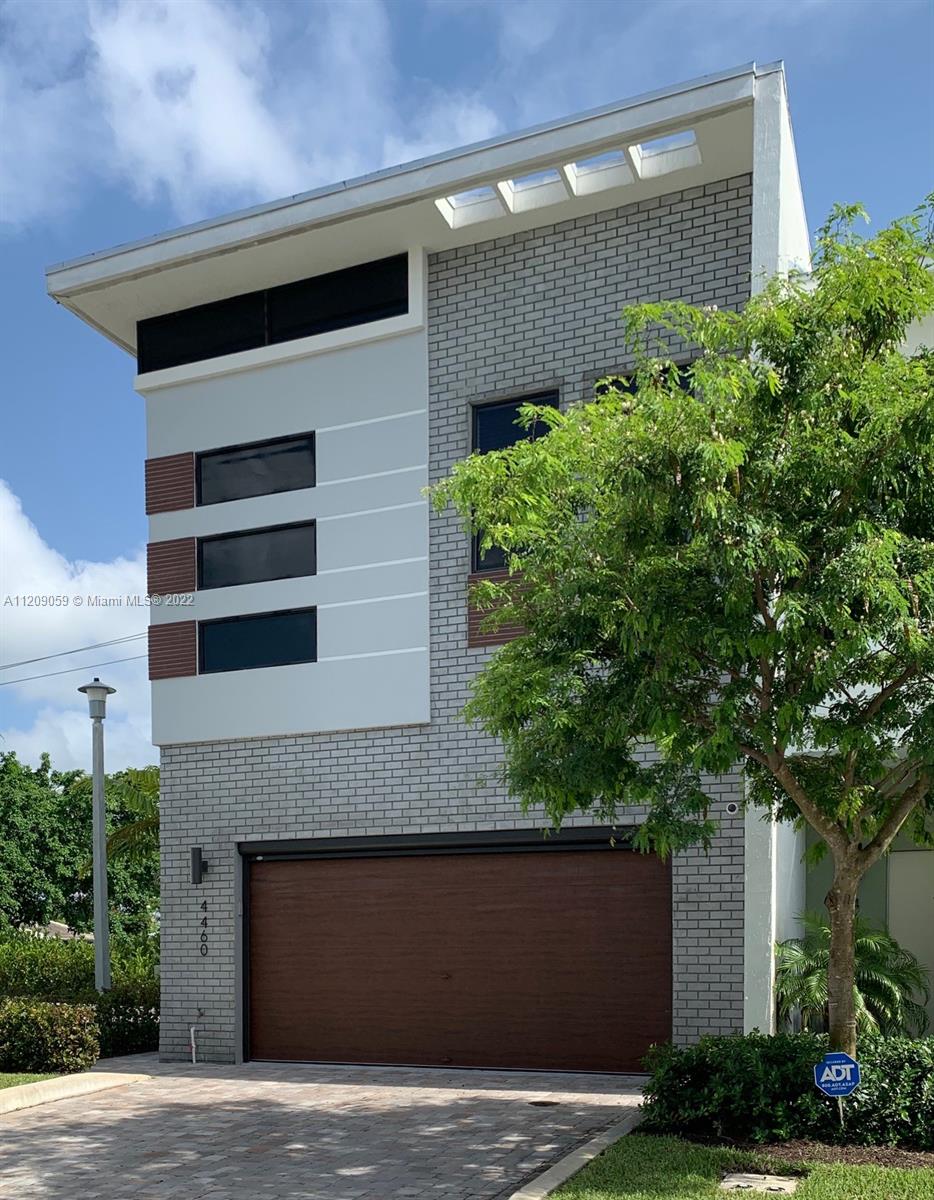 New construction, contemporary corner townhouse in gated community, Strata at Plantation. This Thorin model has a private side entrance. It has 3 bedrooms, a den, a patio that is accessible from the main living area, impact windows, high ceilings and an open floor plan. The kitchen has stainless steel appliances, European cabinetry and a signature island. Master bedroom has a spa bathroom, 2 large walk-in closets and a balcony with wide garden views. Tile on lower level, carpet in bedrooms (upper level). Clubhouse offers amenities including billiard room, pool and the gym and it is a short walk away from the unit.