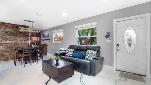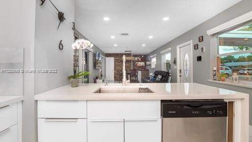 Welcome Home! Nestled in Hollywood, FL is your quiet oasis.. a beautiful 3/2 with lovely pool and hosting area that will leave you looking forward to the weekend! Park in your circular driveway, and enter your smart, solar-paneled home with an open floor plan showcasing your gorgeous kitchen. Equipped with self-closing white cabinets, lower-placed microwave, and stainless steel appliances with wall-mounted hood, this showstopping kitchen is a must see! Your primary room is equipped with walk-in closet, double-sink and backlit mirrors for the primary bathroom. The laundry room boasts a top-of-the-line washer and dryer, perfect storage and wall cabinets for easy organization. With inside + outside bar, pergola, fruit trees, impact windows, roof 2020, shed and storage.. This is HOME!
