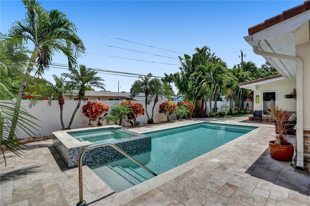 Total New Renovation in desirable Coral Ridge neighborhood. Fabulous 3BR/2BA/,2 Car garage with complete privacy. Vaulted, Open beam ceilings that add charm to the Great room which includes a new modern split rock fireplace. All new Impact windows and doors w/sun blocking shades Enjoy a Huge master Master bath w/soaking tub. A total WOW kitchen w/island &, Kitchen Aid appliances. The home is behind a stately masonry wall with custom decorative gates and travertine up lit walkway to the double glass entryway. Landscaping includes Italian Cypresses and over 70 palm trees. New 19 x 27' covered outdoor granite kitchen/Bar/Fire-pit. Saltwater Pool/Spa, New underground sewer/water lines/electrical/cable to street. Bose system in & out, Brand new A/C, Maintenance free grass. security cams,
