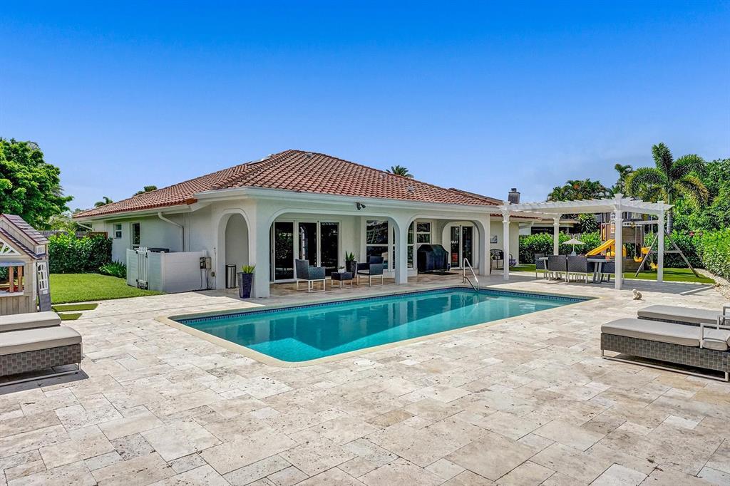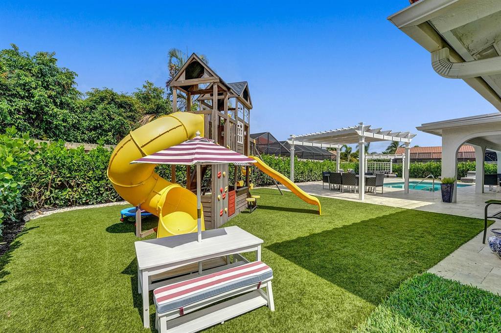 Incredible move-in ready East Boca home with Addison Mizner/A-rated schools. Enjoy South Florida living in the spectacular renovated backyard (2021) complete with travertine pool deck, two pergolas (pre-wired w/220 for hot tub), nearly 100 Clusia hedges that will provide ultimate privacy by years end, turf grass w/new playgrnd, new pool heater/pump. This meticulously maintained home features a split bdrm flr plan w/an easily expandable 2nd bdrm that would add 45sf to bed #2, large master suite w/fully remodeled ensuite offering a stone shower, double vanity, generous walk-in closet. Bright and airy, vaulted ceilings, family rm w/ wine bar, French sliders to enjoy all the outdoor living this home has to offer. 2.5 miles to the beach, school bus service at street, bike to Sugar Sand. A+!