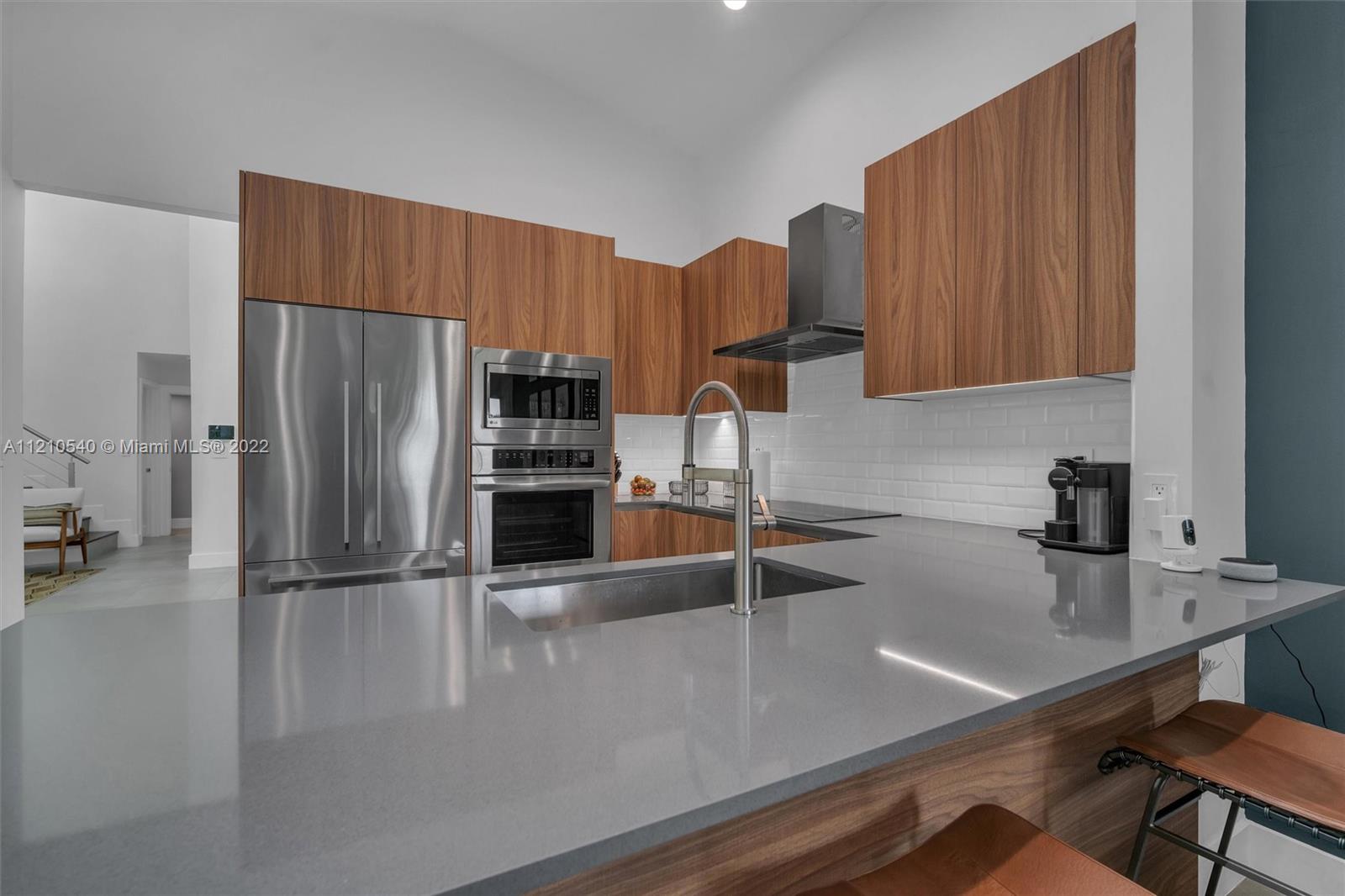 Beautifully remodeled 3/2.5 home in immaculate Grand Palms community. Stunning kitchen with fitted refrigerator, grey marble counters & wood cabinetry. Includes wine cooler all beside a comfortable family area with view of the golf course & lake. Ample living & dining areas with high ceilings, lots of natural light that shows off 24x24 ceramic tiles. All bedrooms have wood floors & custom closets. Master suite, conveniently located on ground floor, has walk in closet, double basins & huge shower with rain head & a hand held option plus an elegant glass door. An extremely well maintained community where HOA includes roof cleaning, outside painting, security, alarm & more. Close to Whole Foods, Costco, I75 & much more.
