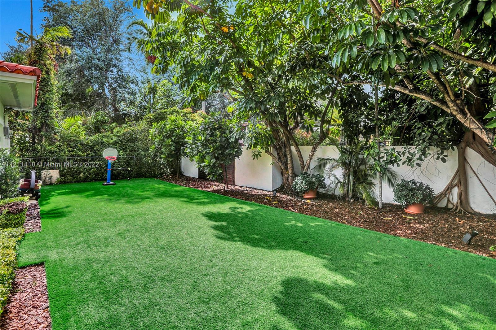 Best location in central Gables! This 3-bed, 2-bath home has an inviting open layout with tons of natural light. Beautiful, original hardwood floors throughout most of the house, and travertine tile in the remaining area. Impact glass doors open to a spacious terrace and landscaped backyard with turf. Upgraded PVC pipes throughout. A newly refinished garage with A/C can be used as a multipurpose room. Walk to the shops and restaurants of Miracle Mile, Coral Gables Youth Center, Coral Gables City Hall, Granada Golf Course, and more. City living in a single-family home. A real gem!