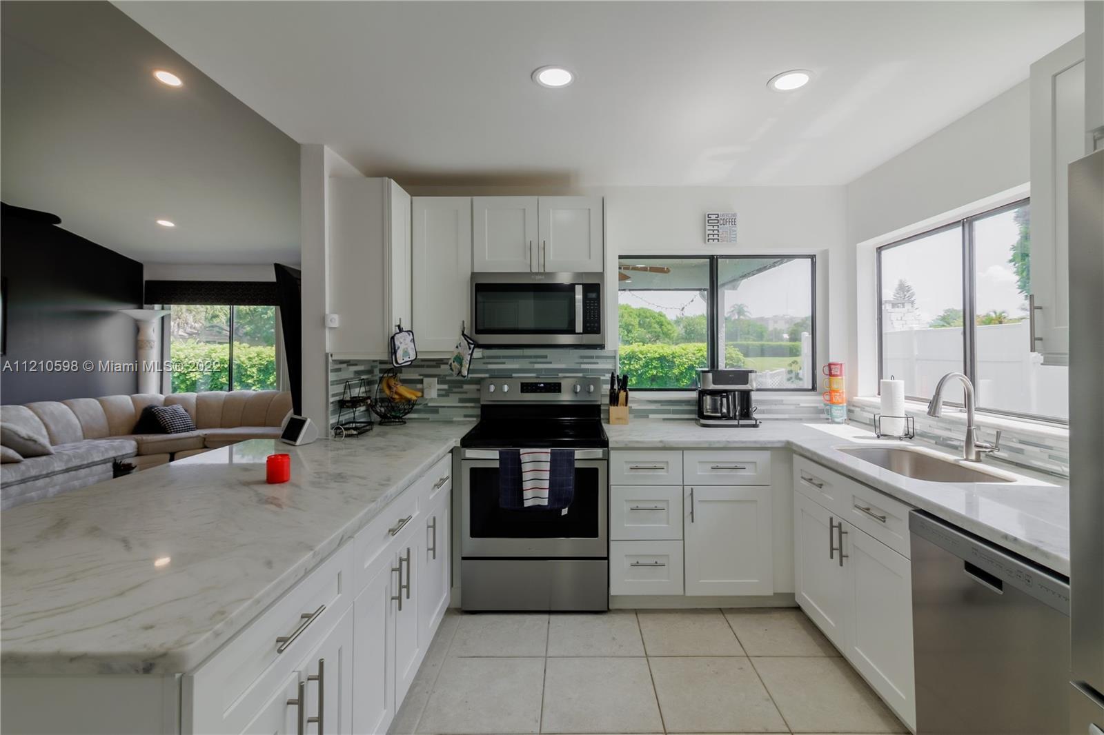 Beautiful lake view 3/2 single family house with stunning and bright kitchen renovated in 2019, white cabinets , granite countertops, breakfast area, stainless steel appliances all replaced in 2019 and tile floors throughout the house. Screened and covered patio. Bermuda shutters for front windows. Outside painted in 2020. Roof replaced in 2019. A/C replaced in 2018. Excellent location near shopping & dining. All schools are A rated. Owner Occupied. DO NOT bother owners. Washer, dryer, alarm system and ring NOT included on the sale. Won't Last.